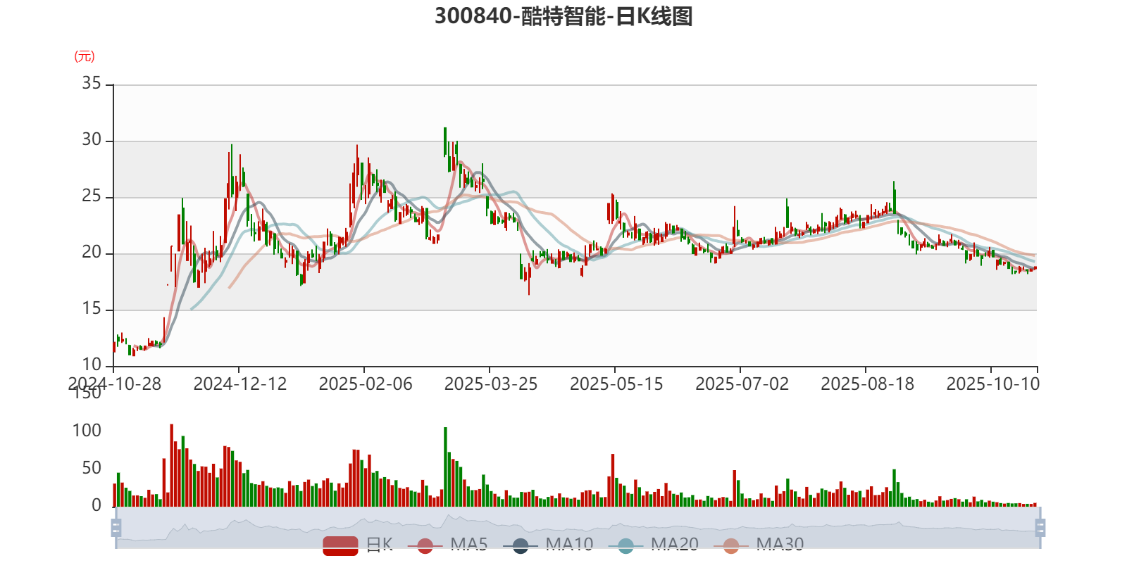 中证智能财讯酷特智能(300840)10月28日披露2025年第三季度报告。前三季度公司实现营业总收入5.05亿元,同比下降5.83%;归母净利润4125.53万元,同比下降73.53%;扣非净利润6273.44万元,同比下降20.18%;经营活动产生的现金流量净额为5849.74万元,同比下降27.76%;报告期内,酷特智能基本每股收益为0.1719元,加权平均净资产收益率为3.24%。