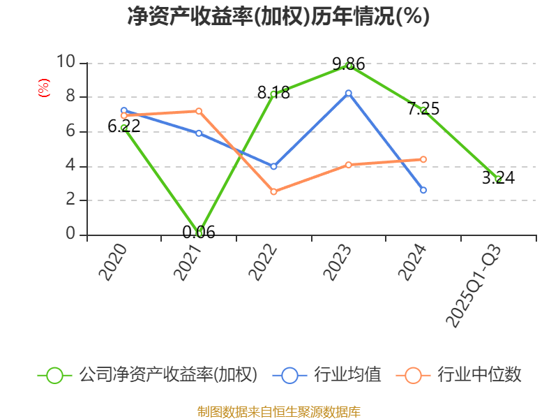 盈利能力方面, 2025年前三季度公司加权平均净资产收益率为3.24%,同比下降9.13个百分点。公司2025年前三季度投入资本回报率为2.7%,较上年同期下降7.92个百分点。