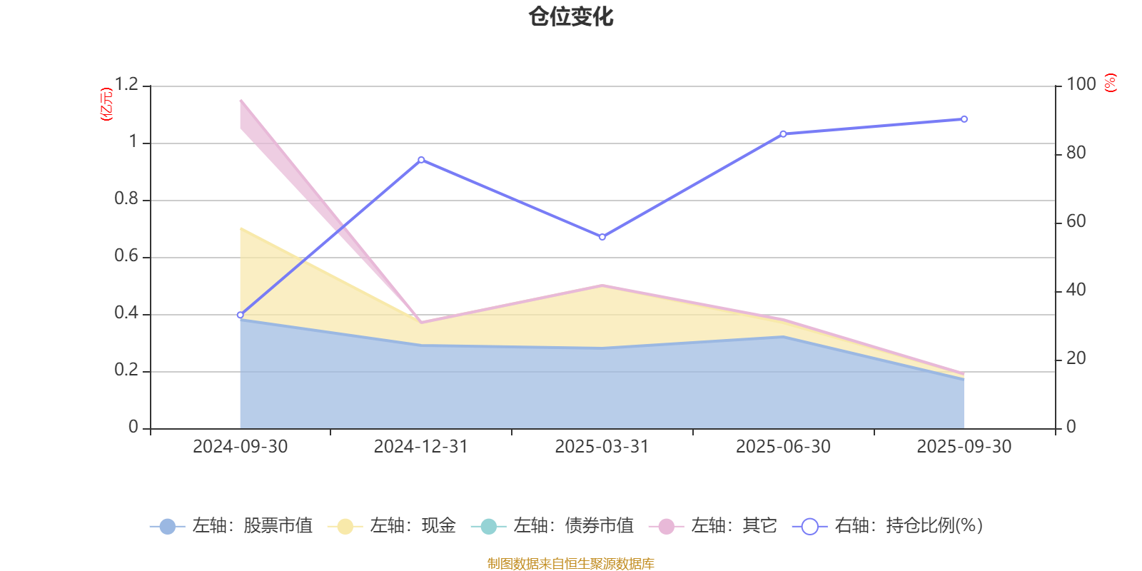 据定期报告数据统计,成立以来平均股票仓位为68.68%,同类平均为83.5%。2025年三季度末基金达到90.24%的最高仓位,2024年三季度末最低,为33.07%。