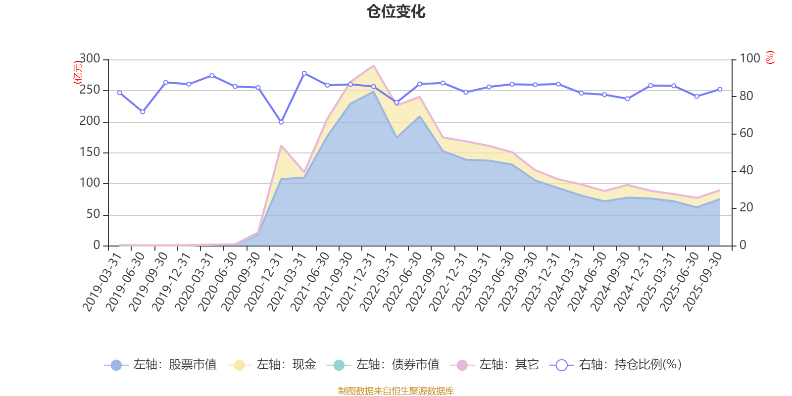 据定期报告数据统计,近三年平均股票仓位为83.77%,同类平均为72.16%。2021年一季度末基金达到92.57%的最高仓位,2020年末最低,为66.35%。