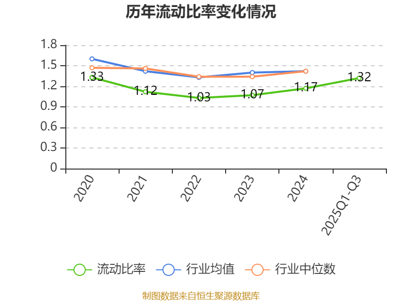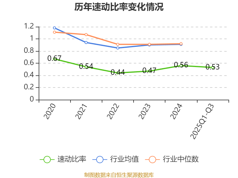 2025年前三季度,公司流动比率为1.32,速动比率为0.53。