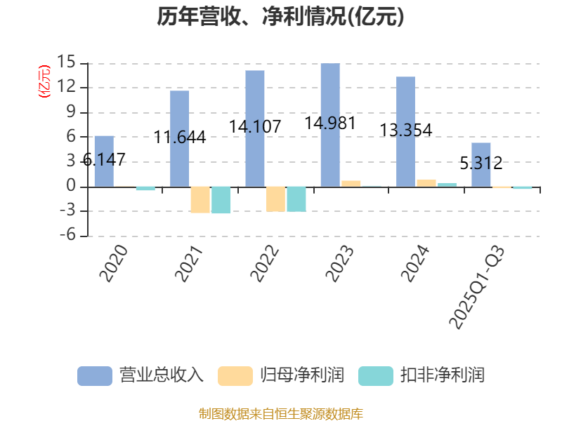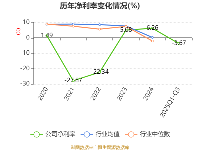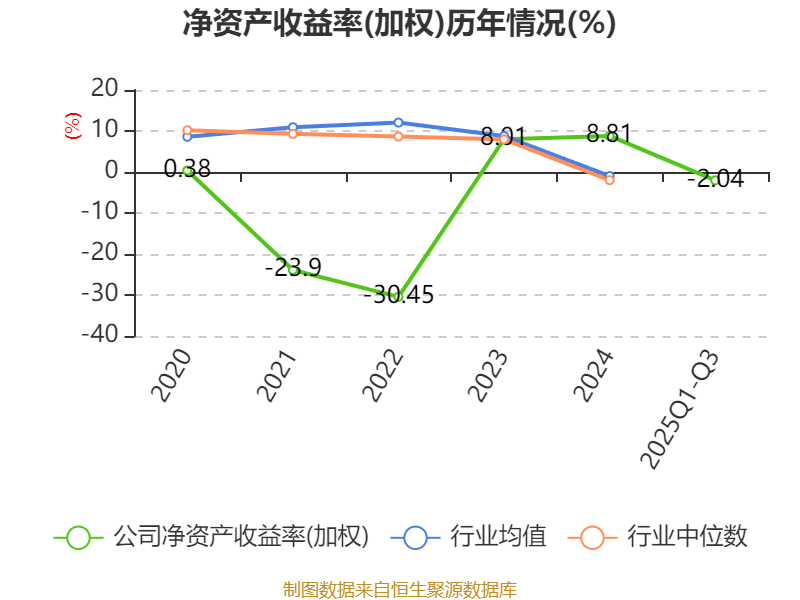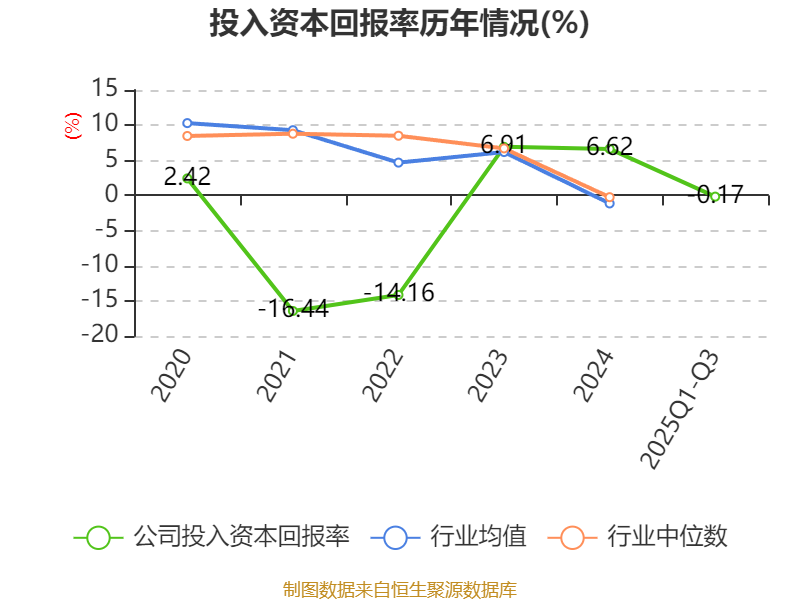 盈利能力方面, 2025年前三季度公司加权平均净资产收益率为-2.04%,同比下降2.79个百分点。公司2025年前三季度投入资本回报率为-0.17%,较上年同期下降2.04个百分点。