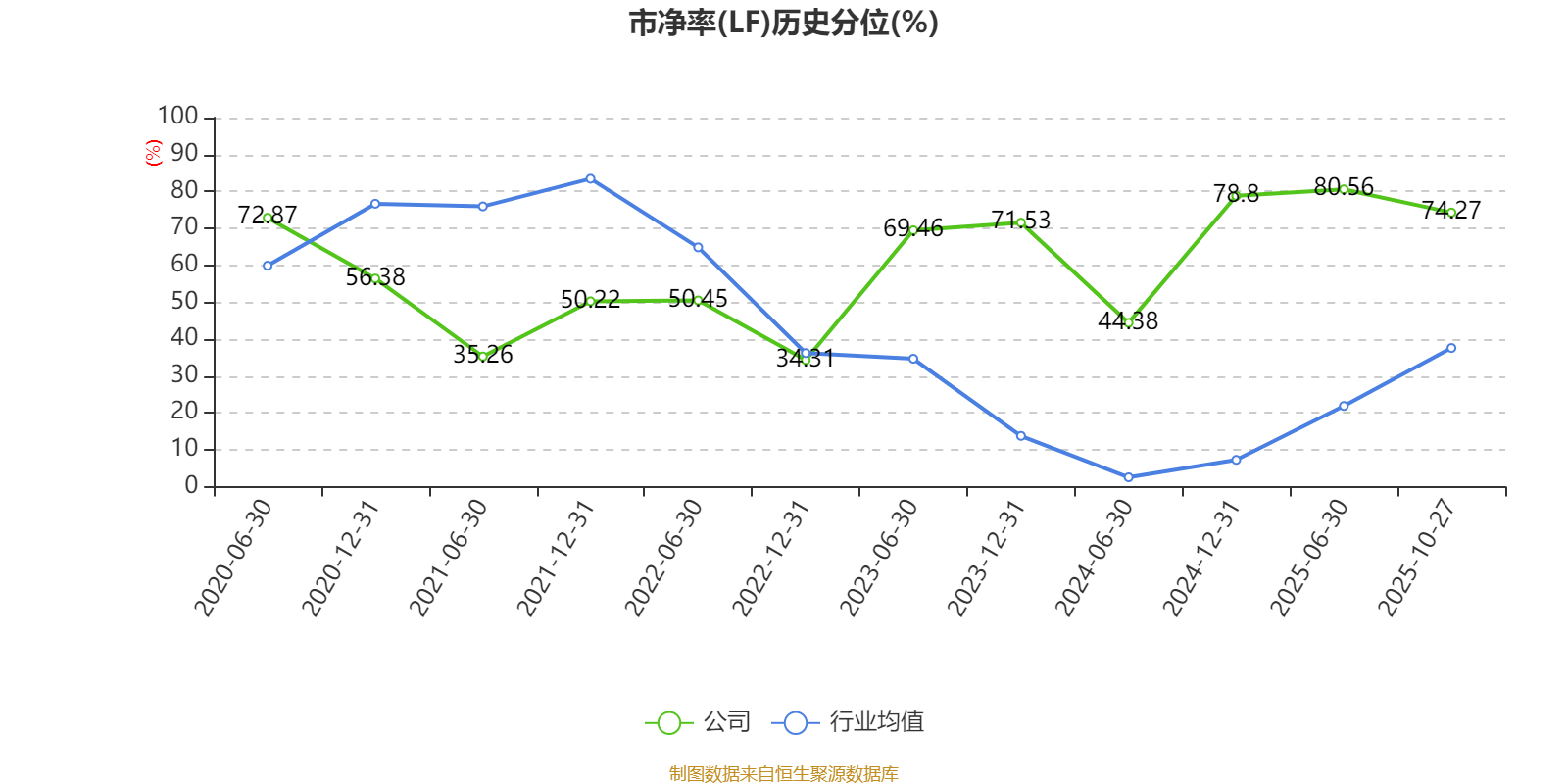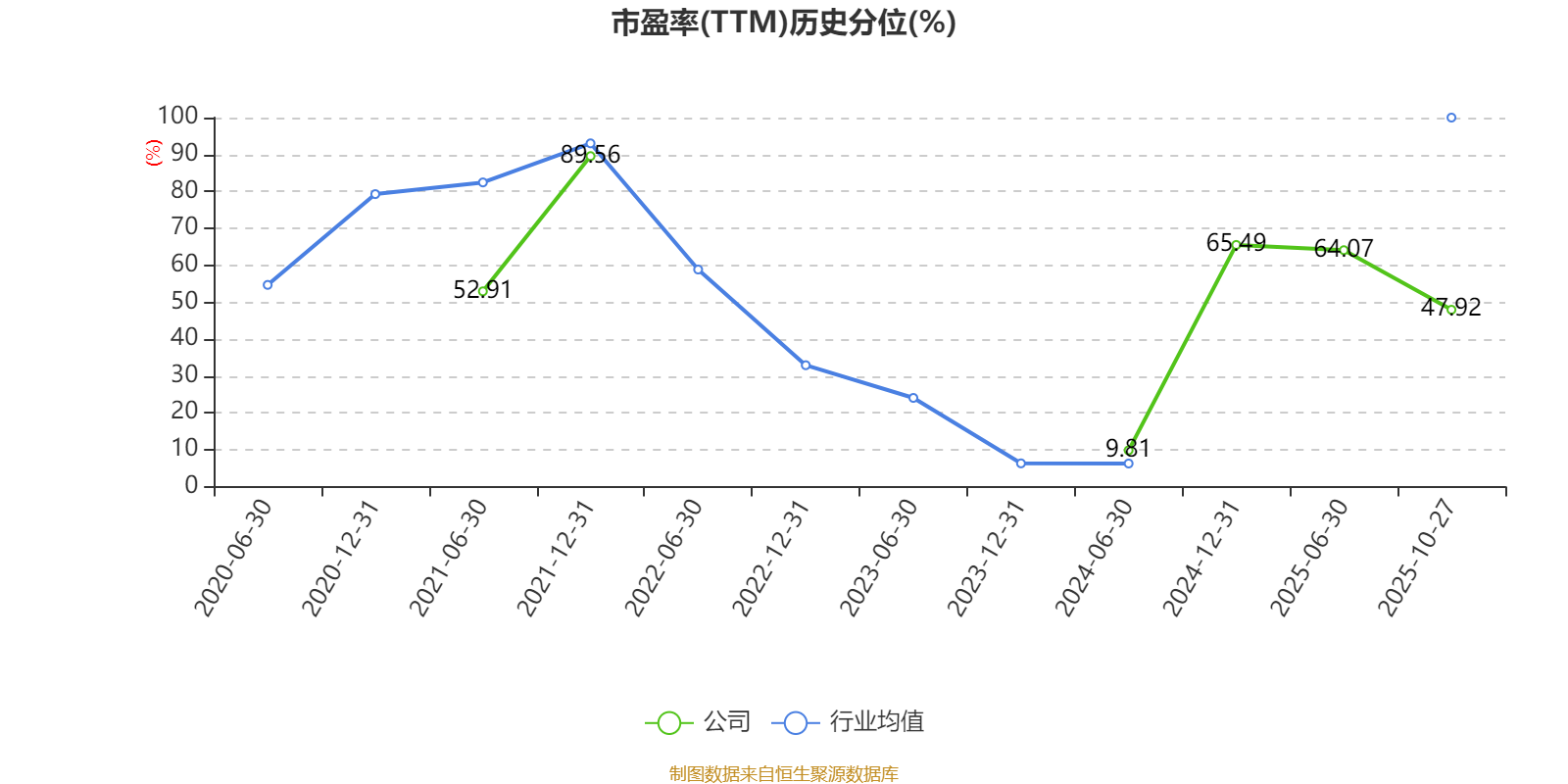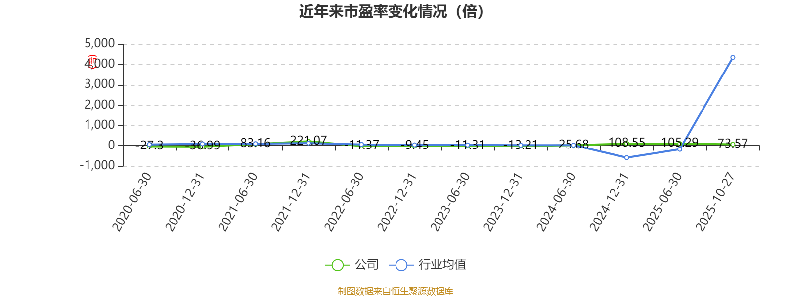 市盈率、市净率为负时,不显示当期分位数,会导致折线图中断。