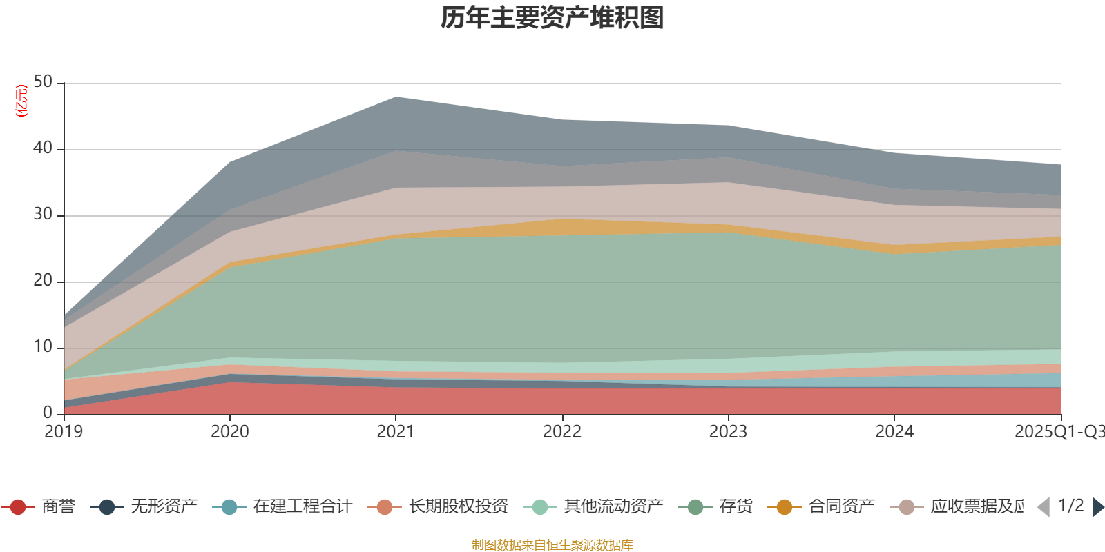 资产重大变化方面,截至2025年三季度末,公司存货较上年末增加7.39%,占公司总资产比重上升4.61个百分点;应收票据及应收账款较上年末减少30.42%,占公司总资产比重下降4.17个百分点;在建工程合计较上年末增加31.45%,占公司总资产比重上升1.55个百分点;应收款项融资较上年末减少40.75%,占公司总资产比重下降0.81个百分点。