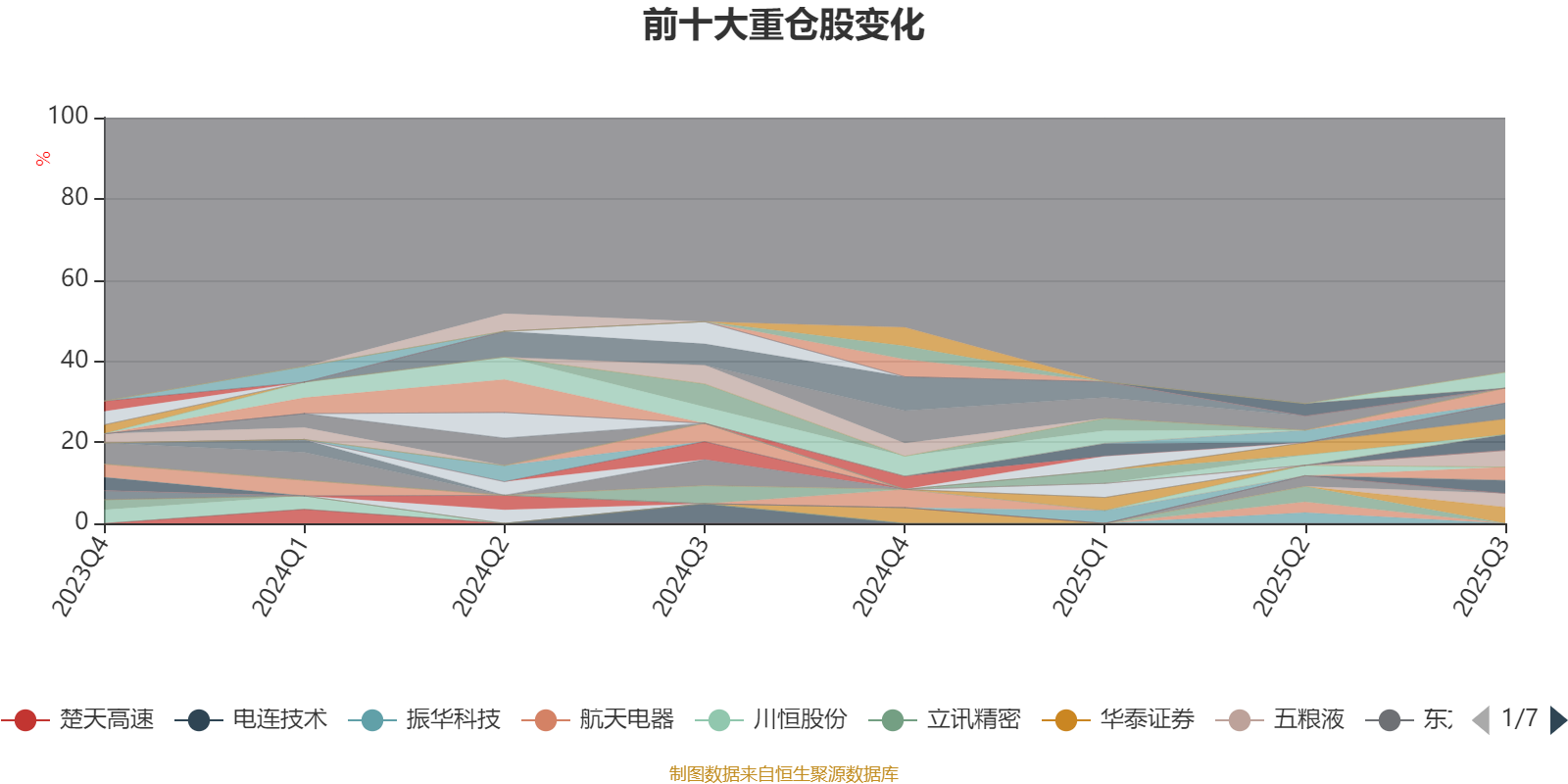 截至2025年三季度末,基金十大重仓股分别是广发证券、华泰证券、山西汾酒、泸州老窖、顺丰控股、中航光电、招商公路、五粮液、新奥股份、北方华创。