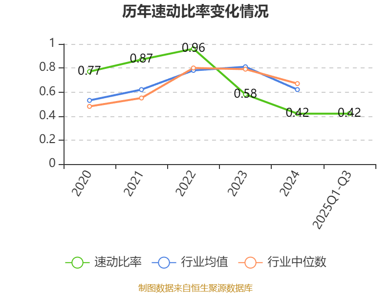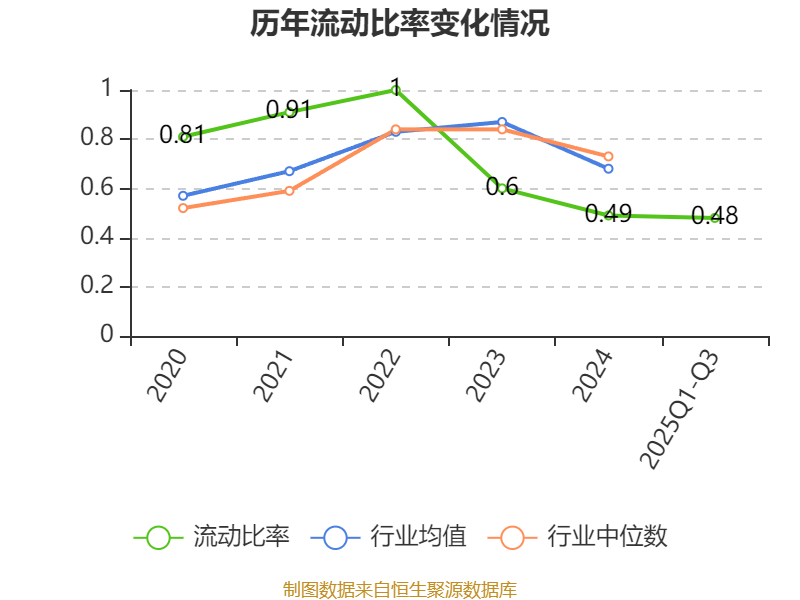 2025年前三季度,公司流动比率为0.48,速动比率为0.42。