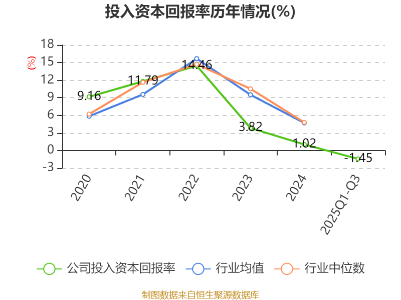 盈利能力方面, 2025年前三季度公司加权平均净资产收益率为-0.17%,同比下降0.47个百分点。公司2025年前三季度投入资本回报率为-1.45%,较上年同期下降1.98个百分点。