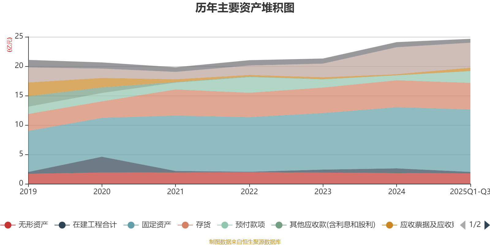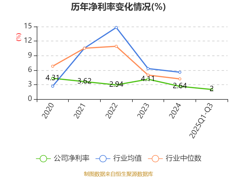 资产重大变化方面,截至2025年三季度末,公司预付款项较上年末增加137.43%,占公司总资产比重上升4.67个百分点;在建工程合计较上年末减少68.94%,占公司总资产比重下降2.26个百分点;货币资金较上年末减少7.44%,占公司总资产比重下降1.82个百分点;应收票据及应收账款较上年末增加228.91%,占公司总资产比重上升1.51个百分点。