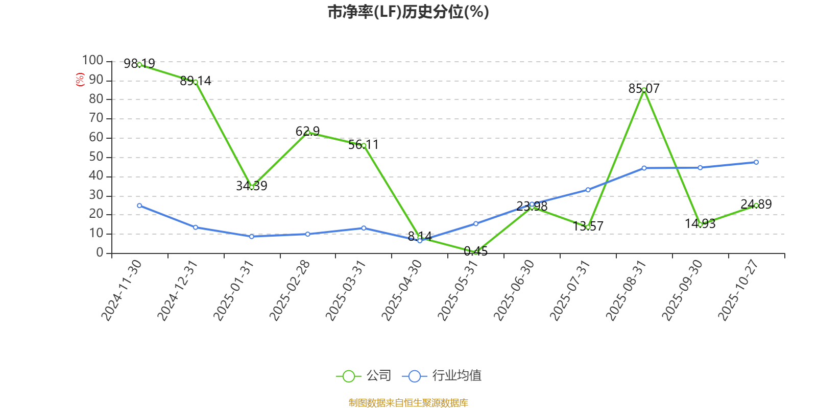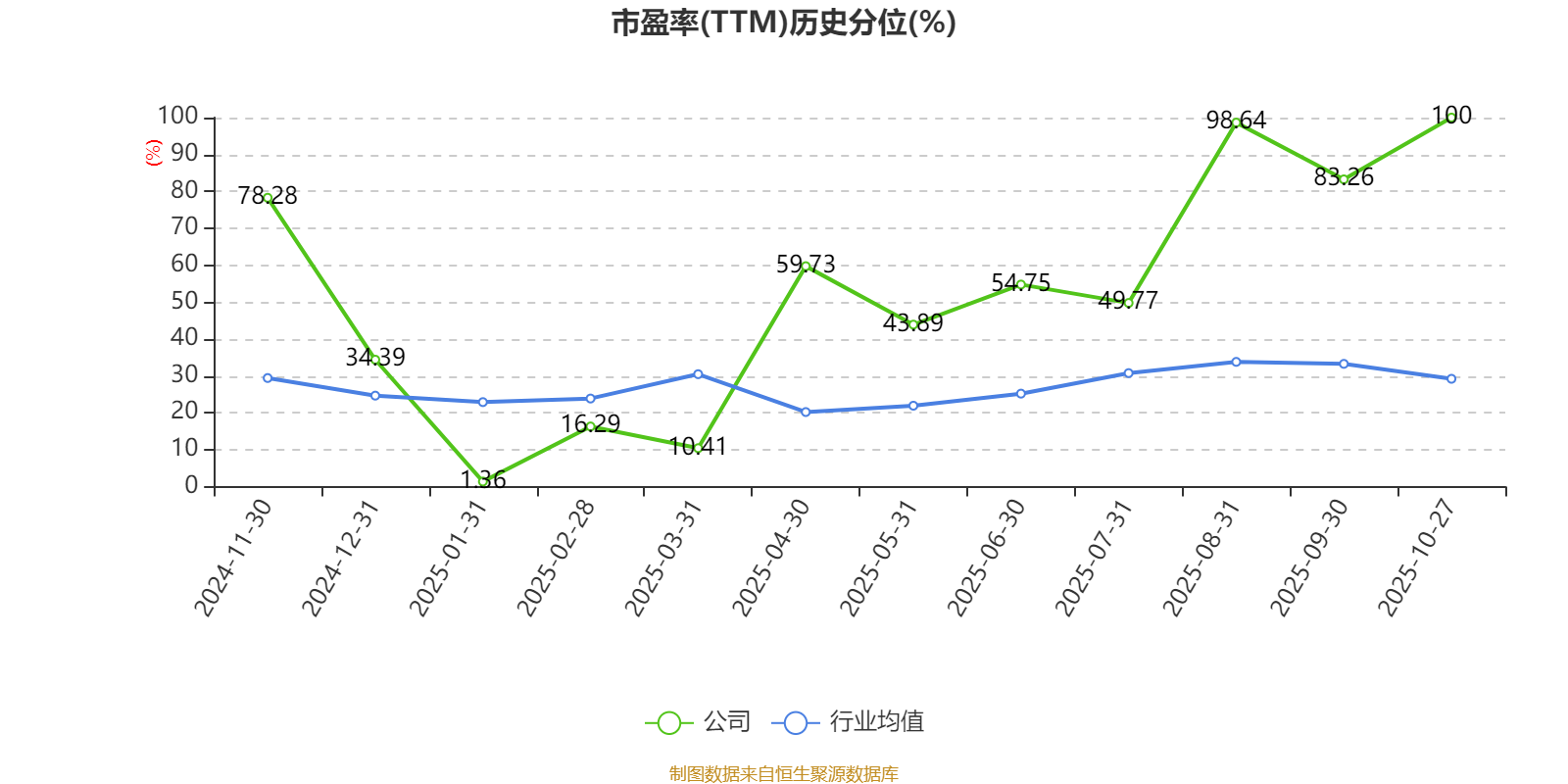 市盈率、市净率为负时,不显示当期分位数,会导致折线图中断。