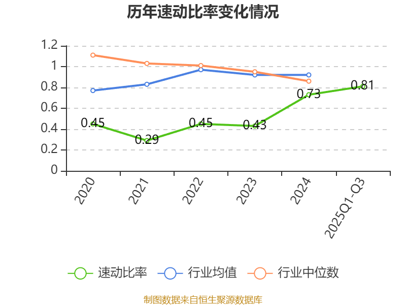 2025年前三季度,公司流动比率为1.33,速动比率为0.81。
