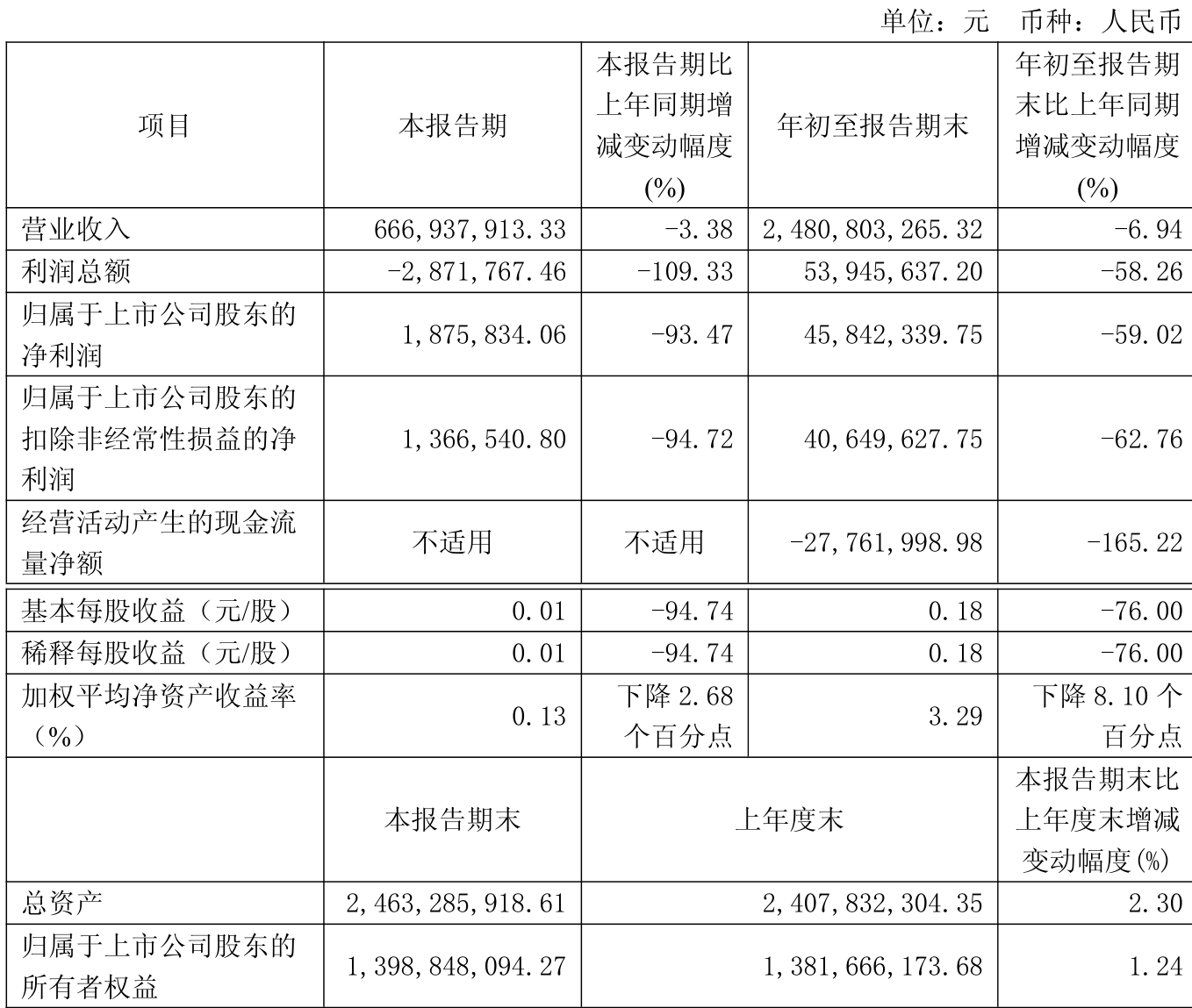 中证智能财讯红四方(603395)10月28日披露2025年第三季度报告。前三季度公司实现营业总收入24.81亿元,同比下降6.94%;归母净利润4584.23万元,同比下降59.02%;扣非净利润4064.96万元,同比下降62.76%;经营活动产生的现金流量净额为-2776.2万元,上年同期为4256.46万元;报告期内,红四方基本每股收益为0.18元,加权平均净资产收益率为3.29%。