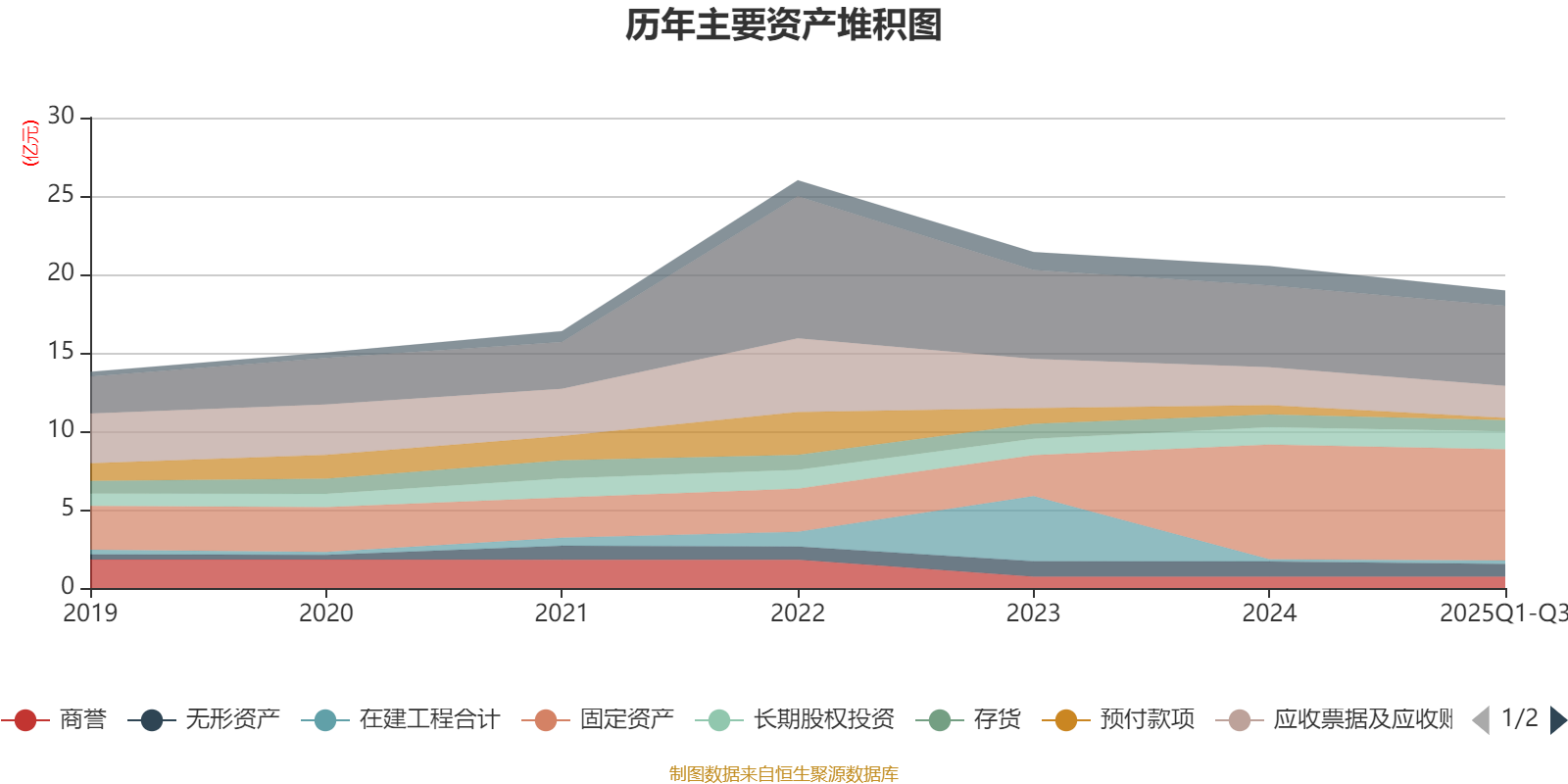 资产重大变化方面,截至2025年三季度末,公司预付款项较上年末减少74.78%,占公司总资产比重下降2.09个百分点;固定资产较上年末减少3.13%,占公司总资产比重上升1.73个百分点;货币资金较上年末减少1.71%,占公司总资产比重上升1.62个百分点;其他流动资产较上年末减少87.82%,占公司总资产比重下降1.31个百分点。