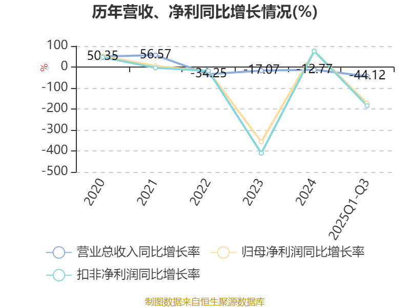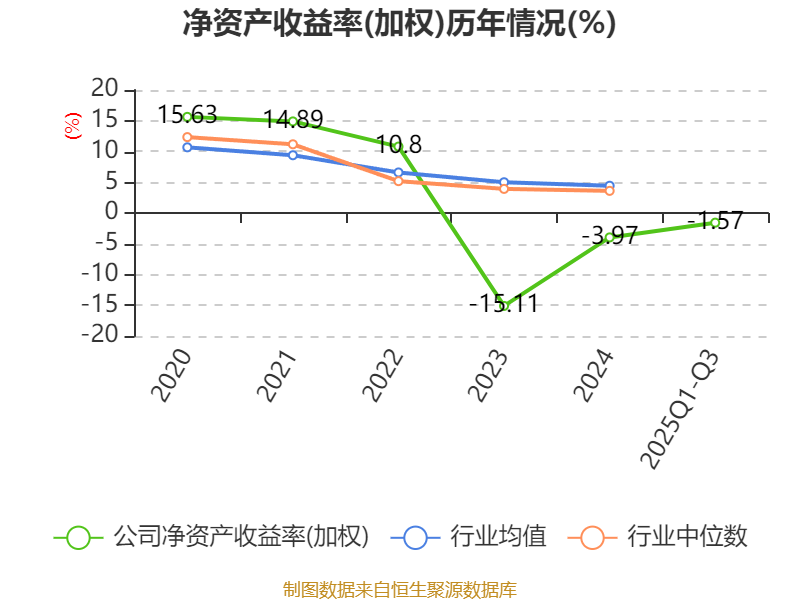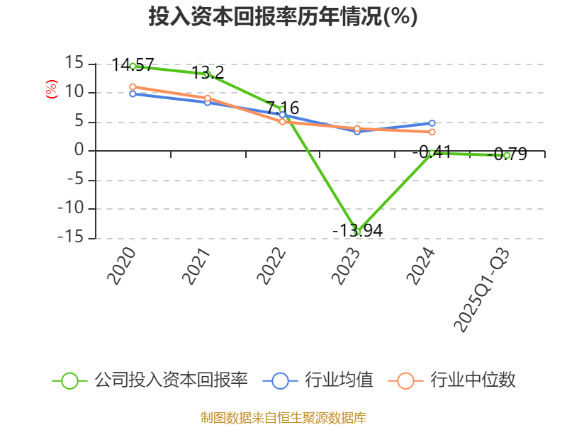 盈利能力方面, 2025年前三季度公司加权平均净资产收益率为-1.57%,同比下降3.57个百分点。公司2025年前三季度投入资本回报率为-0.79%,较上年同期下降2.3个百分点。
