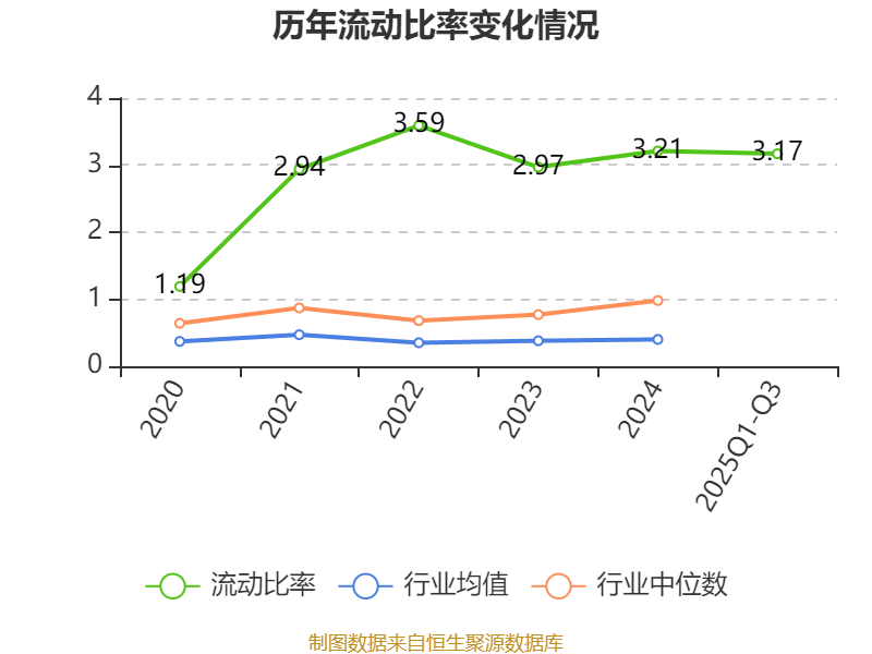 2025年前三季度,公司流动比率为3.17,速动比率为3.16。
