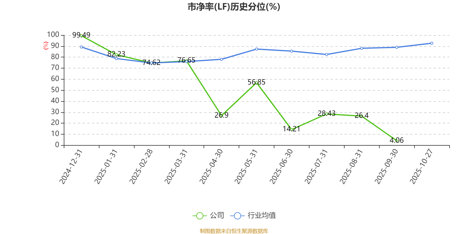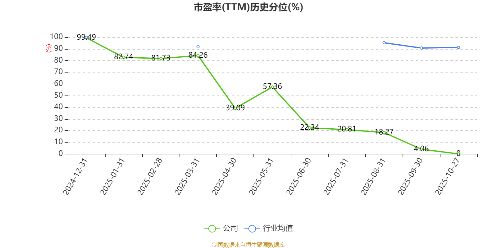 市盈率、市净率为负时,不显示当期分位数,会导致折线图中断。