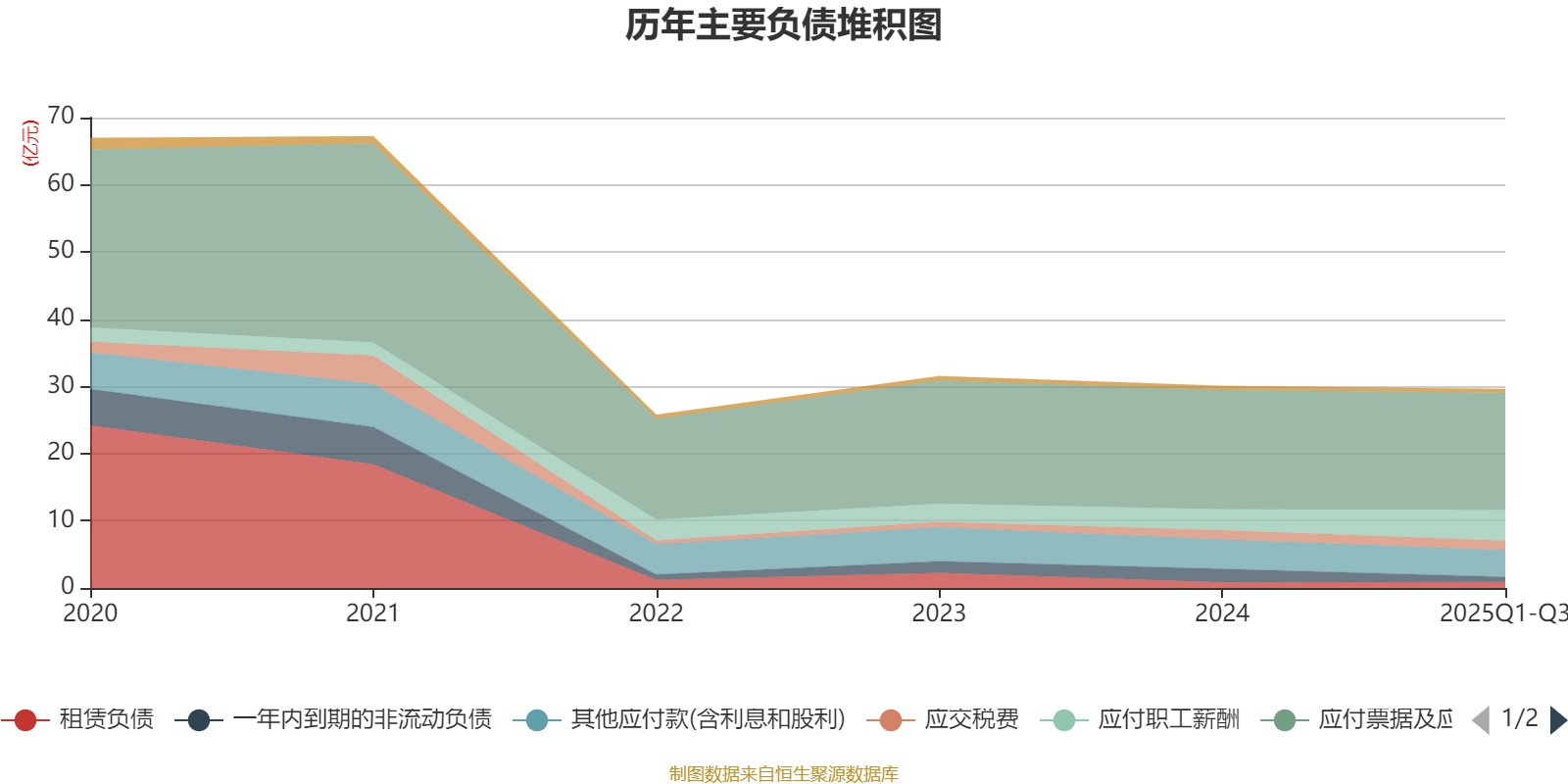 负债重大变化方面,截至2025年三季度末,公司一年内到期的非流动负债较上年末减少62.84%,占公司总资产比重下降0.47个百分点;应付职工薪酬较上年末增加46.25%,占公司总资产比重上升0.44个百分点;应付票据及应付账款较上年末减少1.73%,占公司总资产比重下降0.42个百分点;其他应付款(含利息和股利)较上年末减少8.83%,占公司总资产比重下降0.21个百分点。
