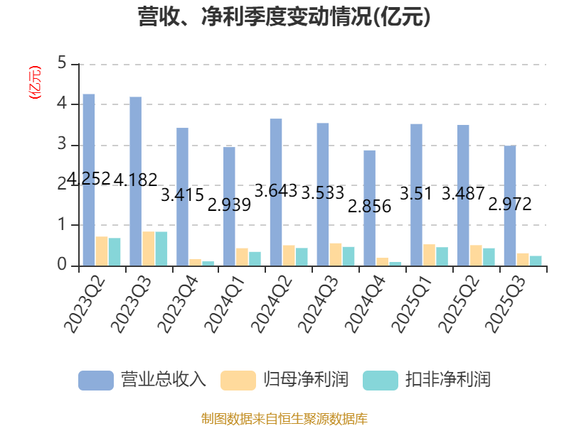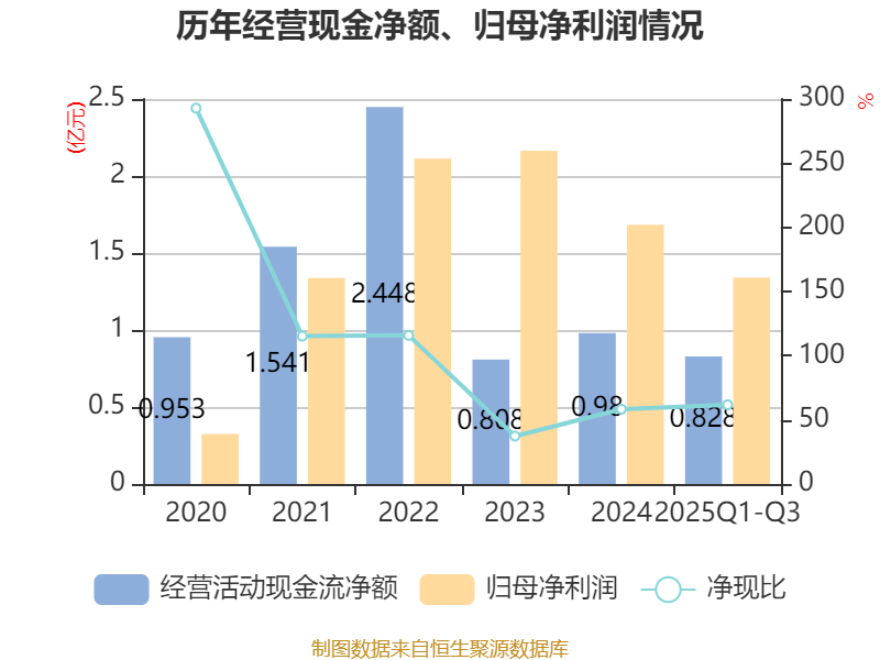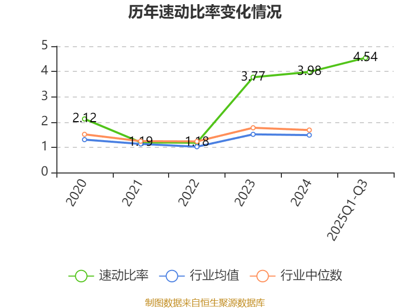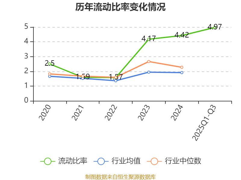 2025年前三季度,公司流动比率为4.97,速动比率为4.54。