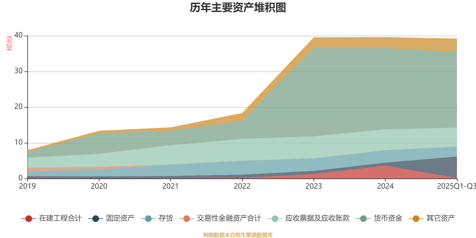 资产重大变化方面,截至2025年三季度末,公司固定资产较上年末增加608.72%,占公司总资产比重上升13.14个百分点;在建工程合计较上年末减少95.76%,占公司总资产比重下降8.7个百分点;货币资金较上年末减少7.12%,占公司总资产比重下降3.58个百分点;应收款项融资较上年末增加63.52%,占公司总资产比重上升1.67个百分点。