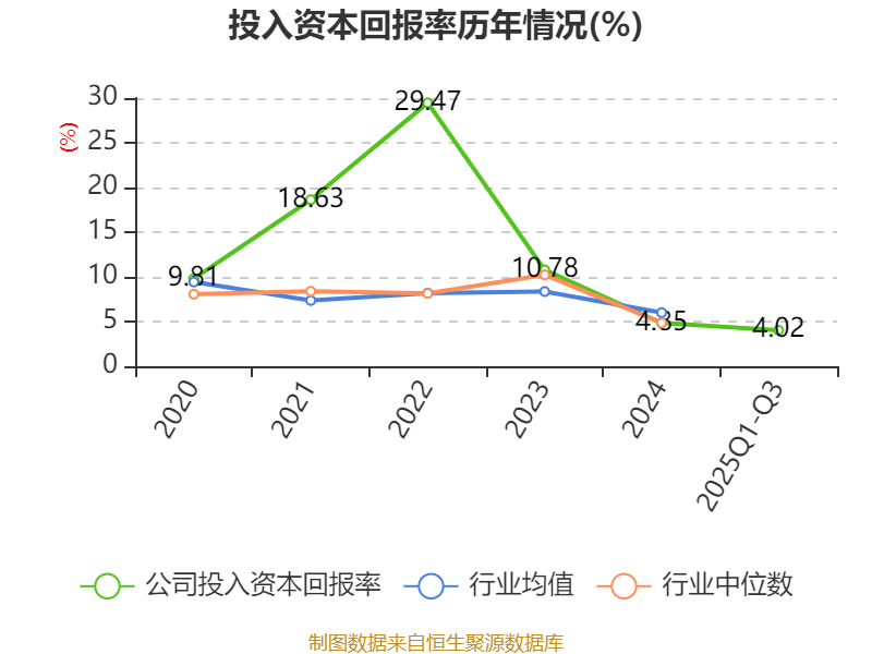 盈利能力方面, 2025年前三季度公司加权平均净资产收益率为4.16%,同比下降0.61个百分点。公司2025年前三季度投入资本回报率为4.02%,较上年同期下降0.27个百分点。