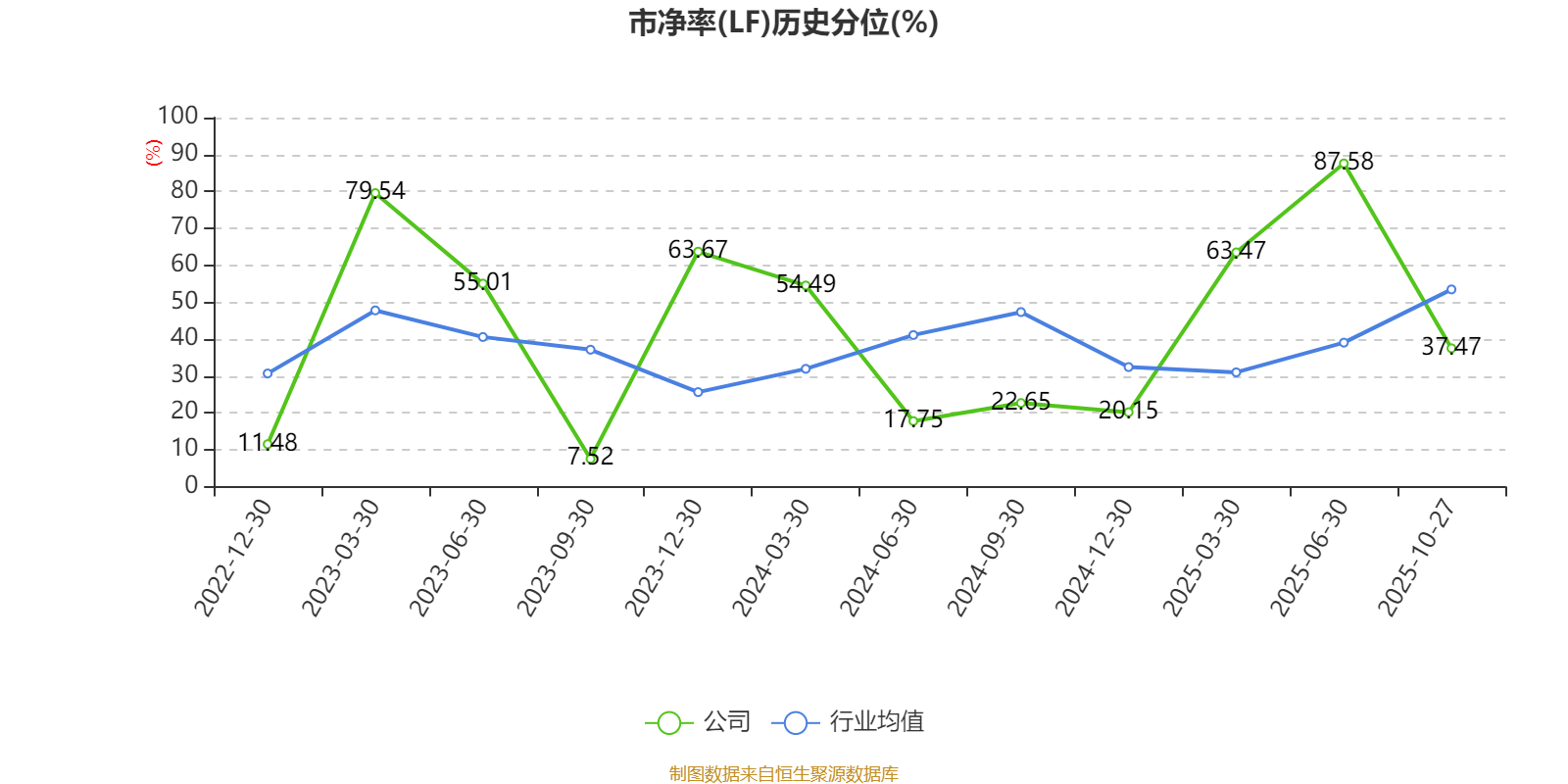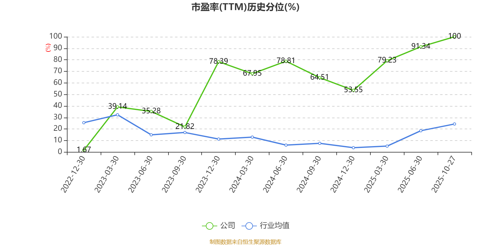市盈率、市净率为负时,不显示当期分位数,会导致折线图中断。