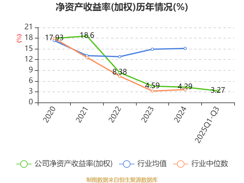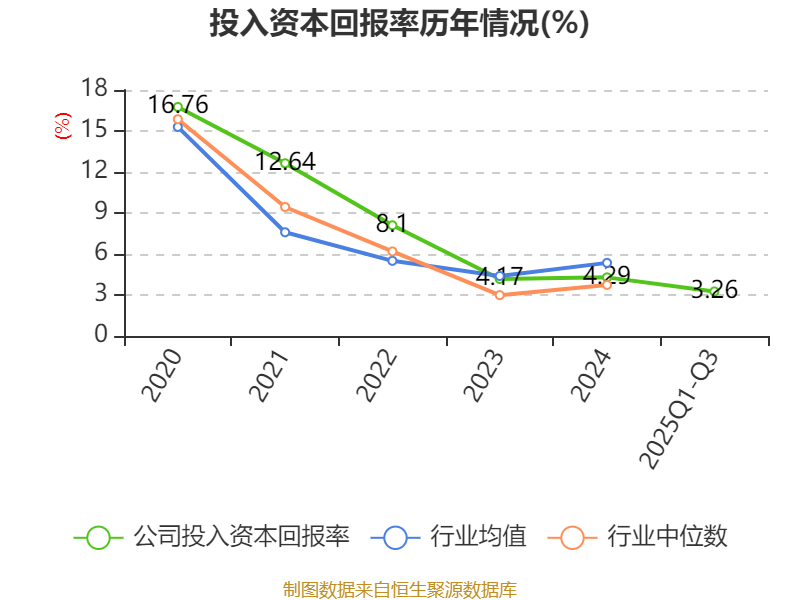 盈利能力方面, 2025年前三季度公司加权平均净资产收益率为3.27%,同比下降1.24个百分点。公司2025年前三季度投入资本回报率为3.26%,较上年同期下降0.95个百分点。