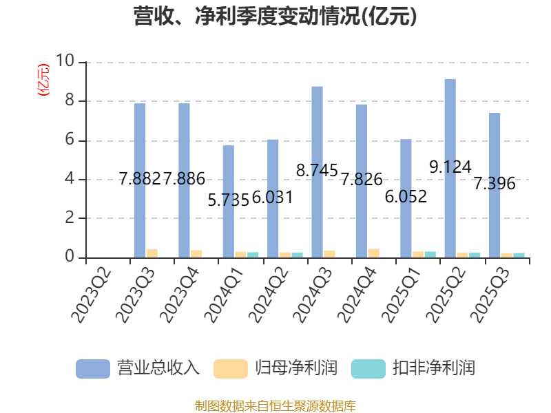 负债重大变化方面,截至2025年三季度末,公司应付票据及应付账款较上年末减少55.73%,占公司总资产比重下降7.52个百分点;短期借款较上年末增加1537.44%,占公司总资产比重上升6.12个百分点;其他应付款(含利息和股利)较上年末减少91.35%,占公司总资产比重下降1.33个百分点;合同负债较上年末减少47.13%,占公司总资产比重下降1.2个百分点。