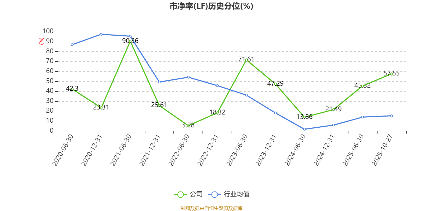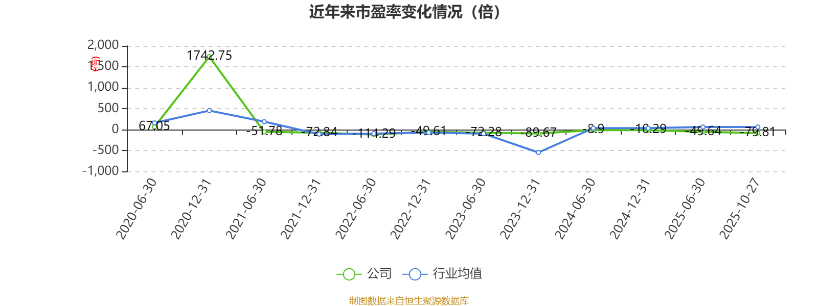 市盈率、市净率为负时,不显示当期分位数,会导致折线图中断。