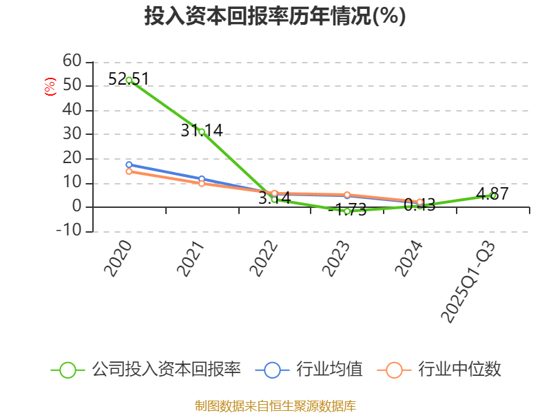 盈利能力方面, 2025年前三季度公司加权平均净资产收益率为6.22%,同比上升4.61个百分点。公司2025年前三季度投入资本回报率为4.87%,较上年同期上升4.06个百分点。