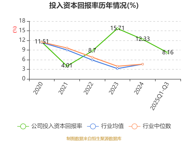 盈利能力方面, 2025年前三季度公司加权平均净资产收益率为9.6%,同比下降6.01个百分点。公司2025年前三季度投入资本回报率为8.16%,较上年同期下降3.05个百分点。