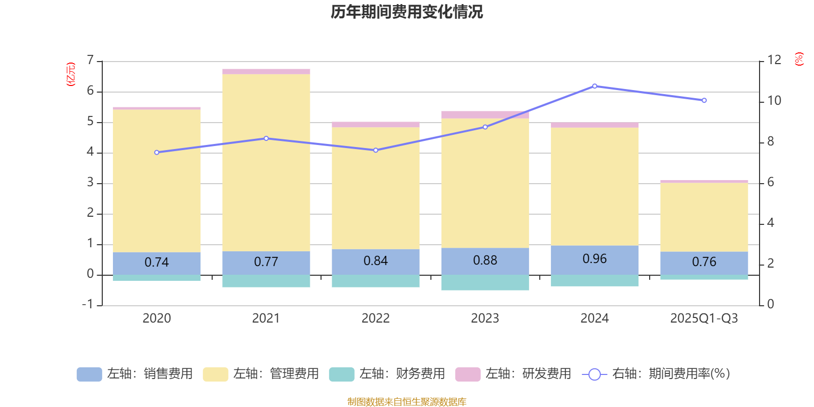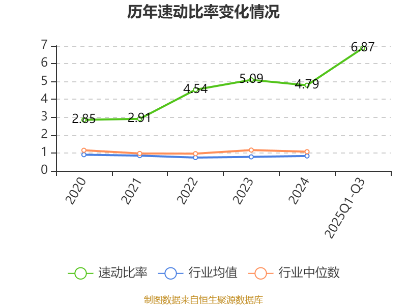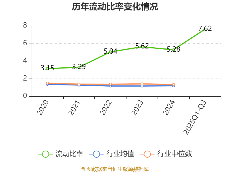 2025年前三季度,公司流动比率为7.62,速动比率为6.87。
