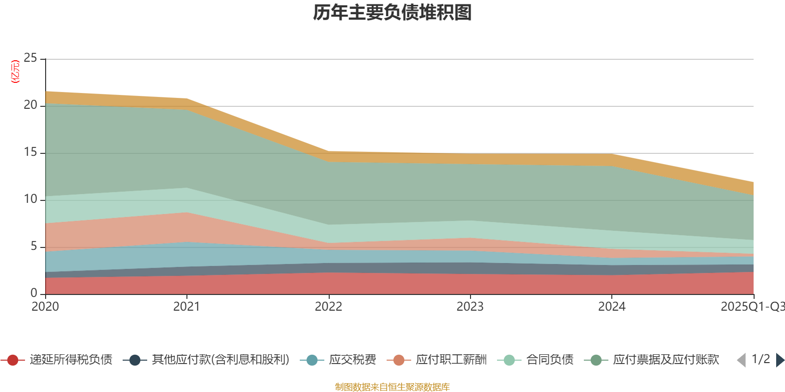 负债重大变化方面,截至2025年三季度末,公司应付票据及应付账款较上年末减少30.6%,占公司总资产比重下降1.48个百分点;应付职工薪酬较上年末减少70.69%,占公司总资产比重下降0.5个百分点;合同负债较上年末减少24.6%,占公司总资产比重下降0.33个百分点;递延所得税负债较上年末增加17.64%,占公司总资产比重上升0.3个百分点。