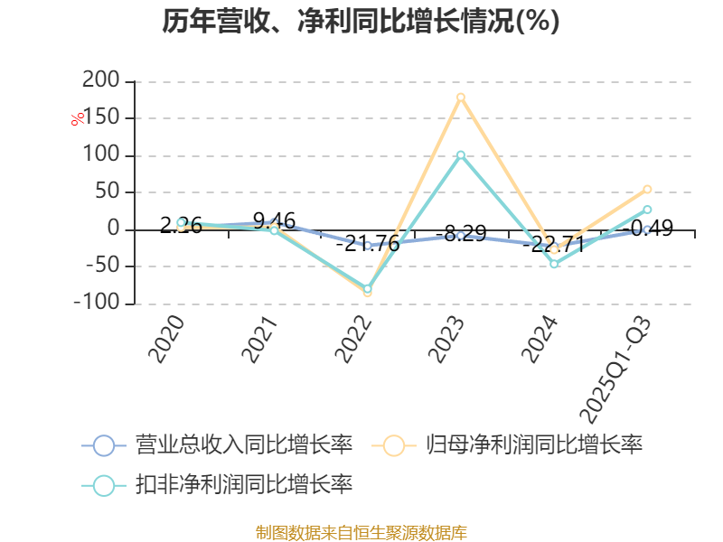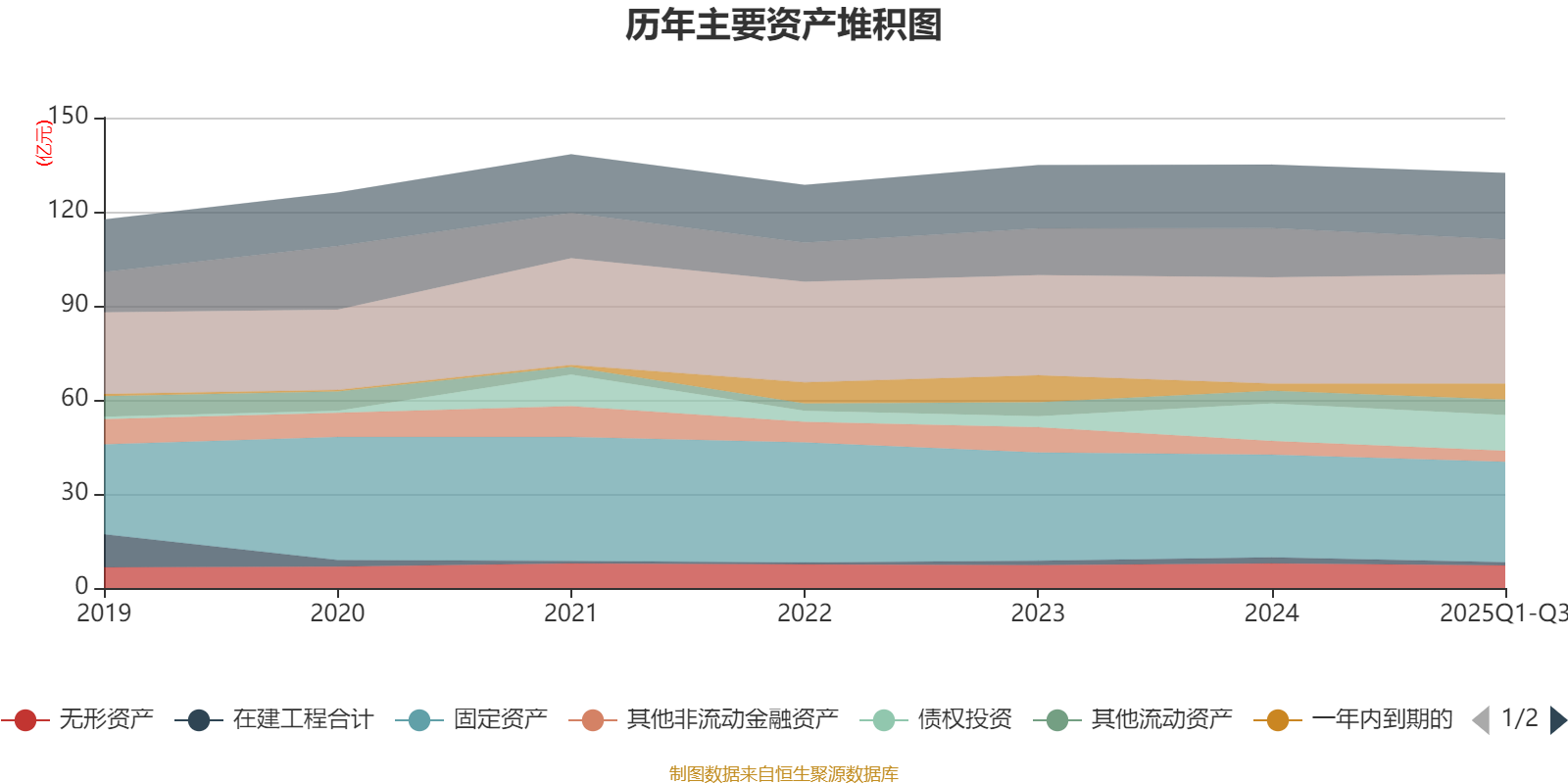 资产重大变化方面,截至2025年三季度末,公司货币资金较上年末减少29.07%,占公司总资产比重下降3.21个百分点;一年内到期的非流动资产较上年末增加121.36%,占公司总资产比重上升2.12个百分点;交易性金融资产合计较上年末增加3.05%,占公司总资产比重上升1.29个百分点;投资性房地产占公司总资产的1.03%,上年末为0。