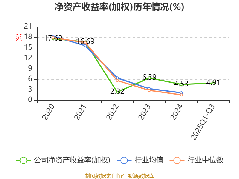 盈利能力方面, 2025年前三季度公司加权平均净资产收益率为4.91%,同比上升1.69个百分点。公司2025年前三季度投入资本回报率为4.82%,较上年同期上升1.71个百分点。