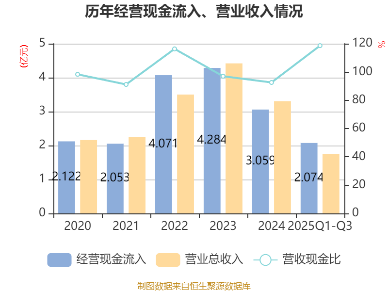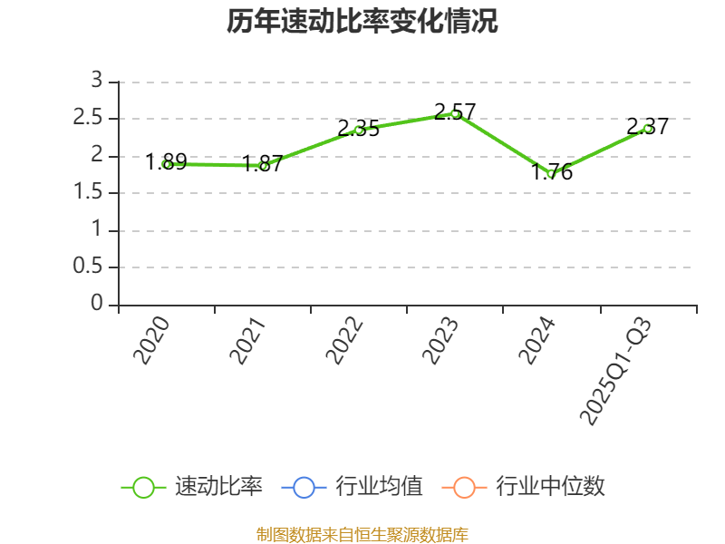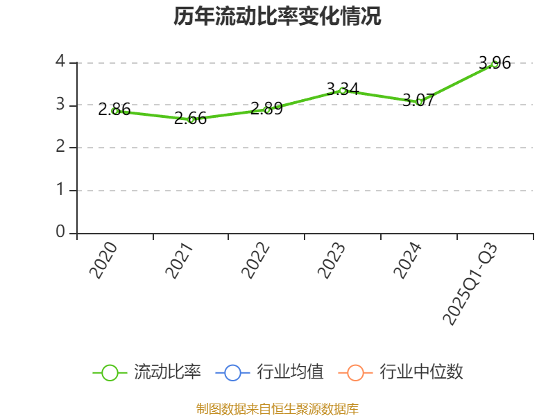 2025年前三季度,公司流动比率为3.96,速动比率为2.37。