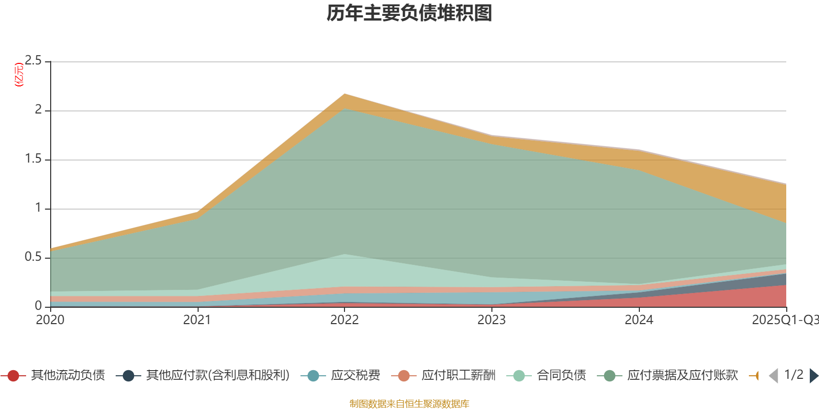 负债重大变化方面,截至2025年三季度末,公司应付票据及应付账款较上年末减少63.75%,占公司总资产比重下降8.45个百分点;短期借款较上年末增加98.65%,占公司总资产比重上升2.15个百分点;其他流动负债较上年末增加140.86%,占公司总资产比重上升1.44个百分点;其他应付款(含利息和股利)较上年末增加115.35%,占公司总资产比重上升0.69个百分点。