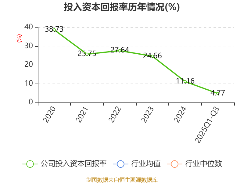 盈利能力方面, 2025年前三季度公司加权平均净资产收益率为5.03%,同比下降6.31个百分点。公司2025年前三季度投入资本回报率为4.77%,较上年同期下降6.41个百分点。