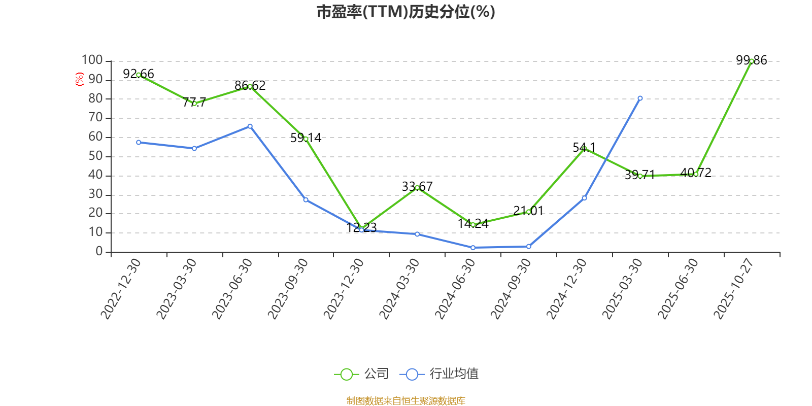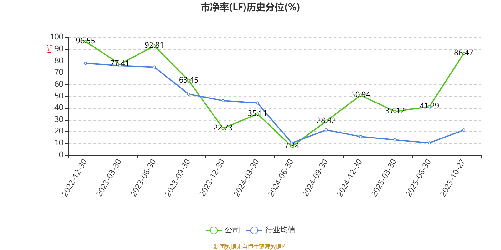 市盈率、市净率为负时,不显示当期分位数,会导致折线图中断。
