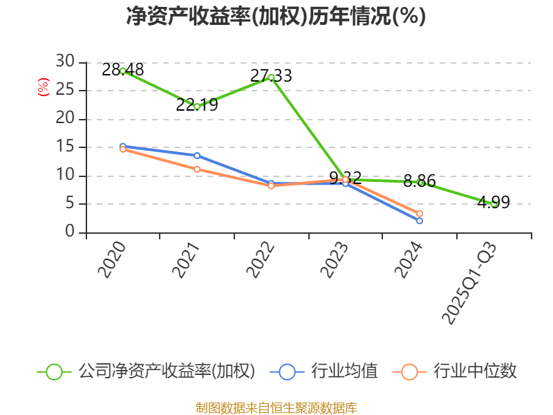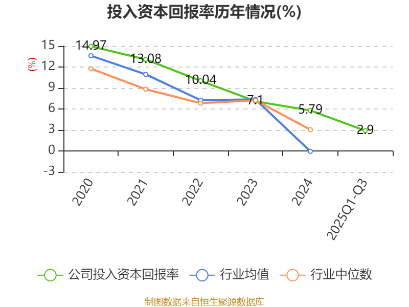 盈利能力方面, 2025年前三季度公司加权平均净资产收益率为4.99%,同比下降3.64个百分点。公司2025年前三季度投入资本回报率为2.9%,较上年同期下降2.67个百分点。