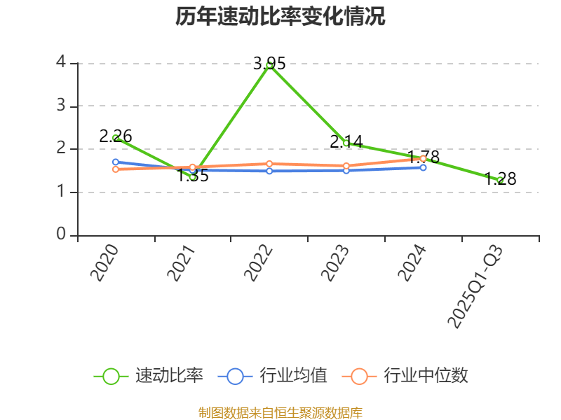 2025年前三季度,公司流动比率为1.48,速动比率为1.28。