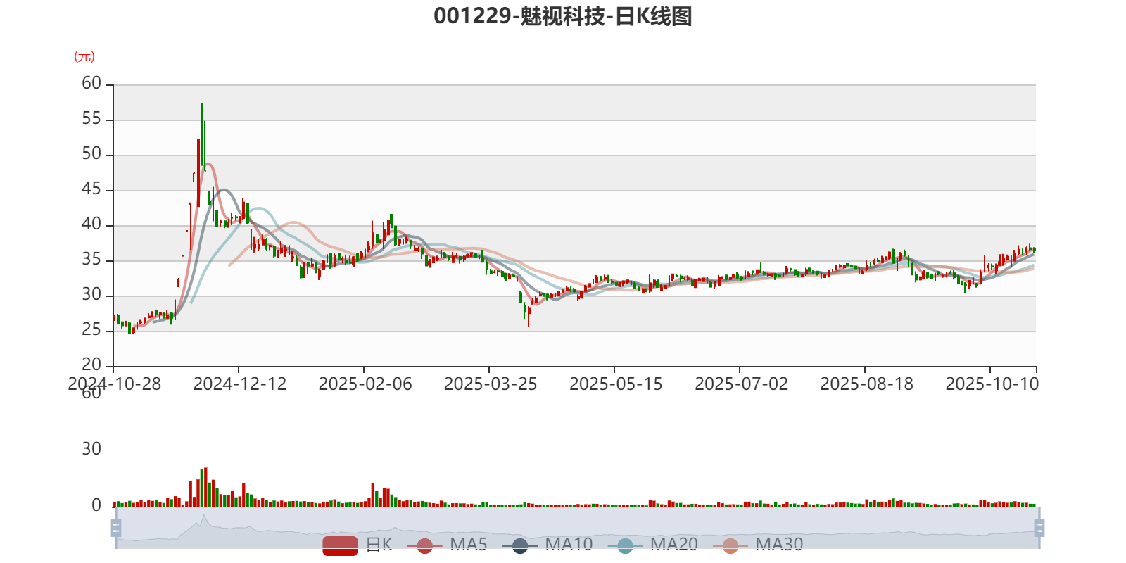中证智能财讯魅视科技(001229)10月28日披露2025年第三季度报告。前三季度公司实现营业总收入1.32亿元,同比增长12.61%;归母净利润4019.54万元,同比下降22.90%;扣非净利润3906.41万元,同比下降19.78%;经营活动产生的现金流量净额为8700.94万元,同比增长113.70%;报告期内,魅视科技基本每股收益为0.4元,加权平均净资产收益率为4.05%。