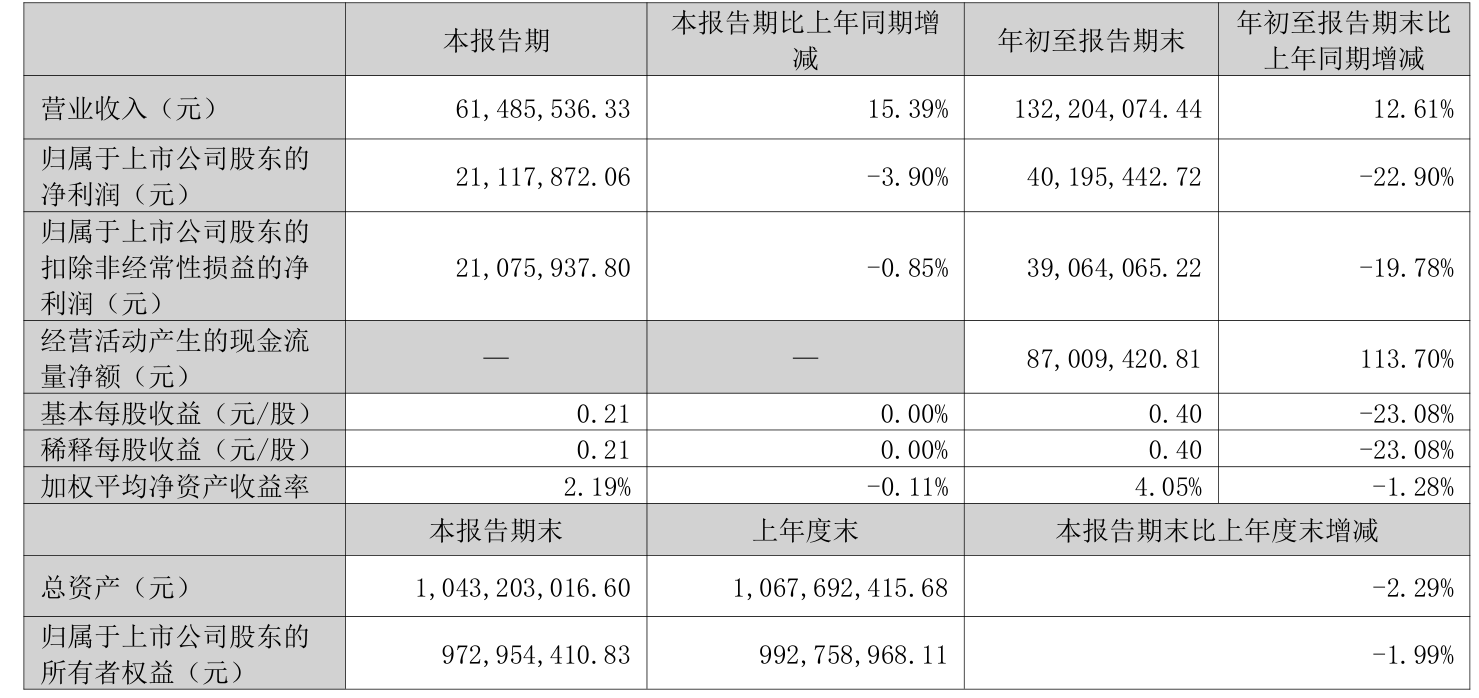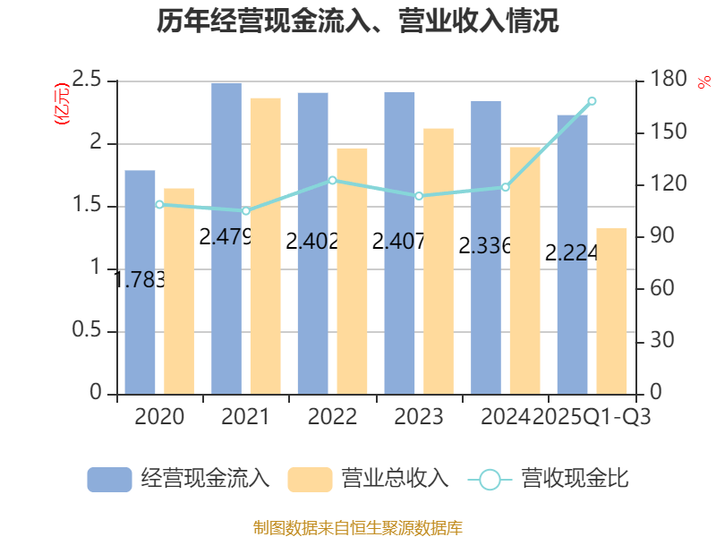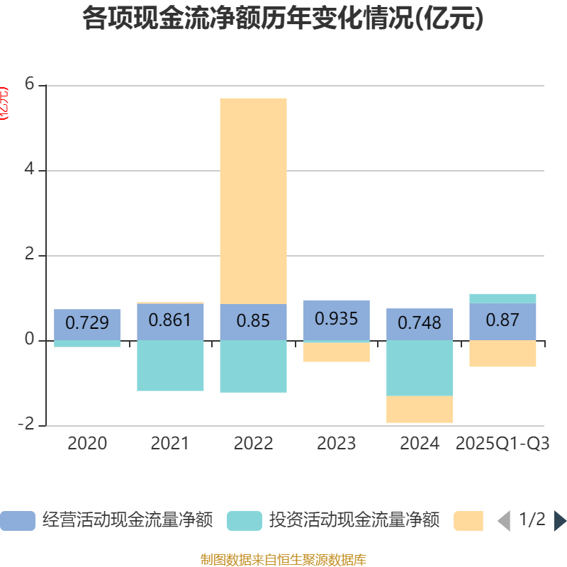 2025年前三季度,公司经营活动现金流净额为8700.94万元,同比增长113.7%;筹资活动现金流净额-6214.07万元,同比增加52.31万元;投资活动现金流净额2156.85万元,上年同期为1239.21万元。