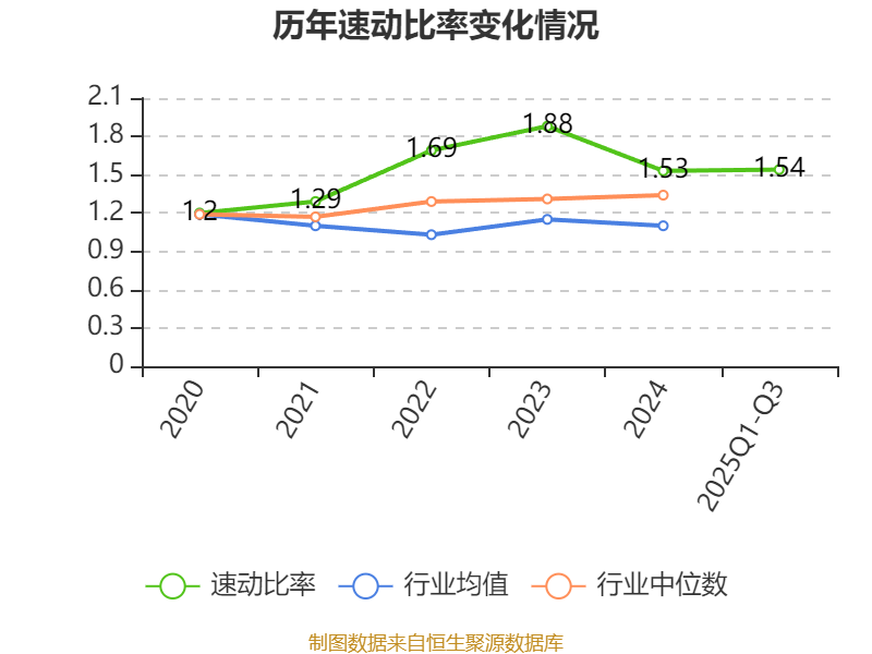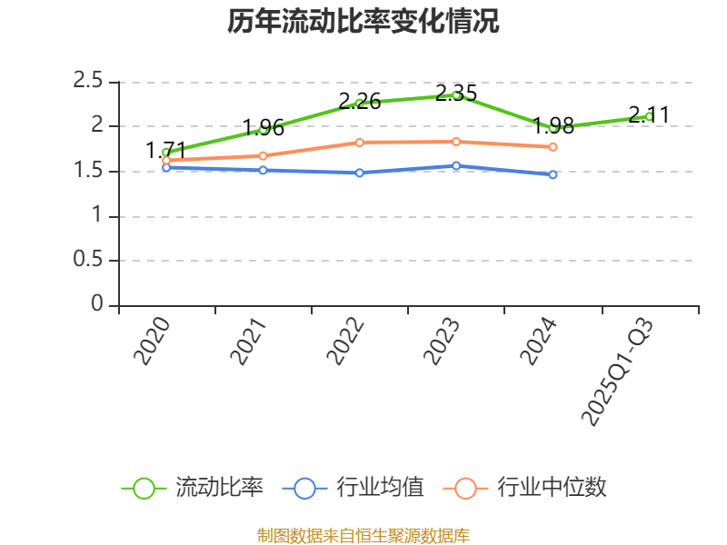 2025年前三季度,公司流动比率为2.11,速动比率为1.54。