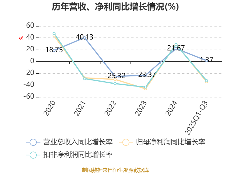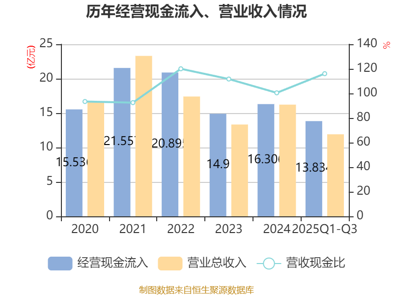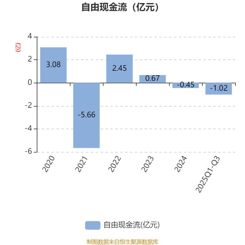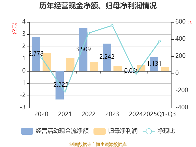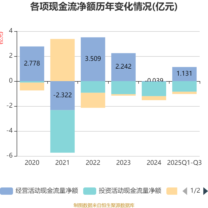 2025年前三季度,公司经营活动现金流净额为1.13亿元,同比增长1675.93%;筹资活动现金流净额-1826.04万元,同比减少308.48万元;投资活动现金流净额-8481.06万元,上年同期为-2891.14万元。