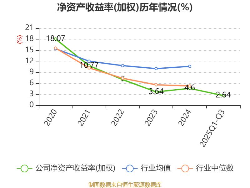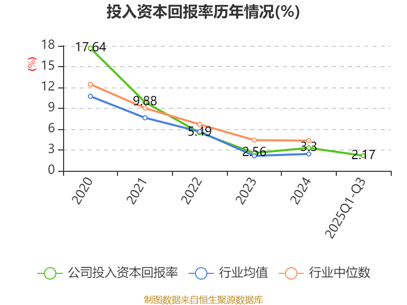 盈利能力方面, 2025年前三季度公司加权平均净资产收益率为2.64%,同比下降1.44个百分点。公司2025年前三季度投入资本回报率为2.17%,较上年同期下降0.9个百分点。