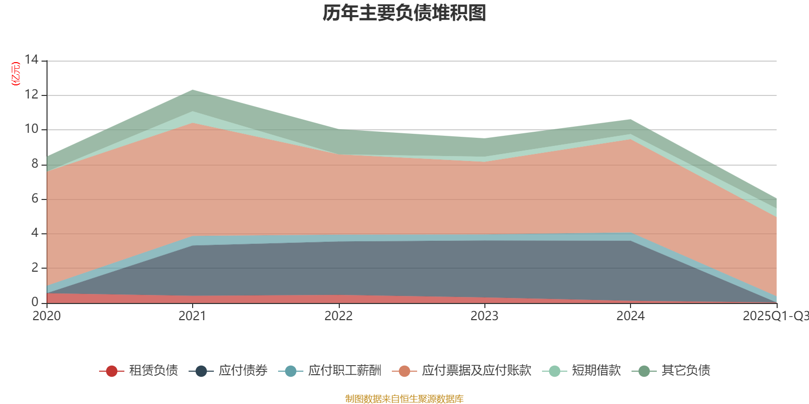 负债重大变化方面,截至2025年三季度末,公司应付债券较上年末减少100%,占公司总资产比重下降15.86个百分点;应付票据及应付账款较上年末减少15.1%,占公司总资产比重下降2.6个百分点;短期借款较上年末增加68.33%,占公司总资产比重上升1.06个百分点;应付职工薪酬较上年末减少25.02%,占公司总资产比重下降0.46个百分点。