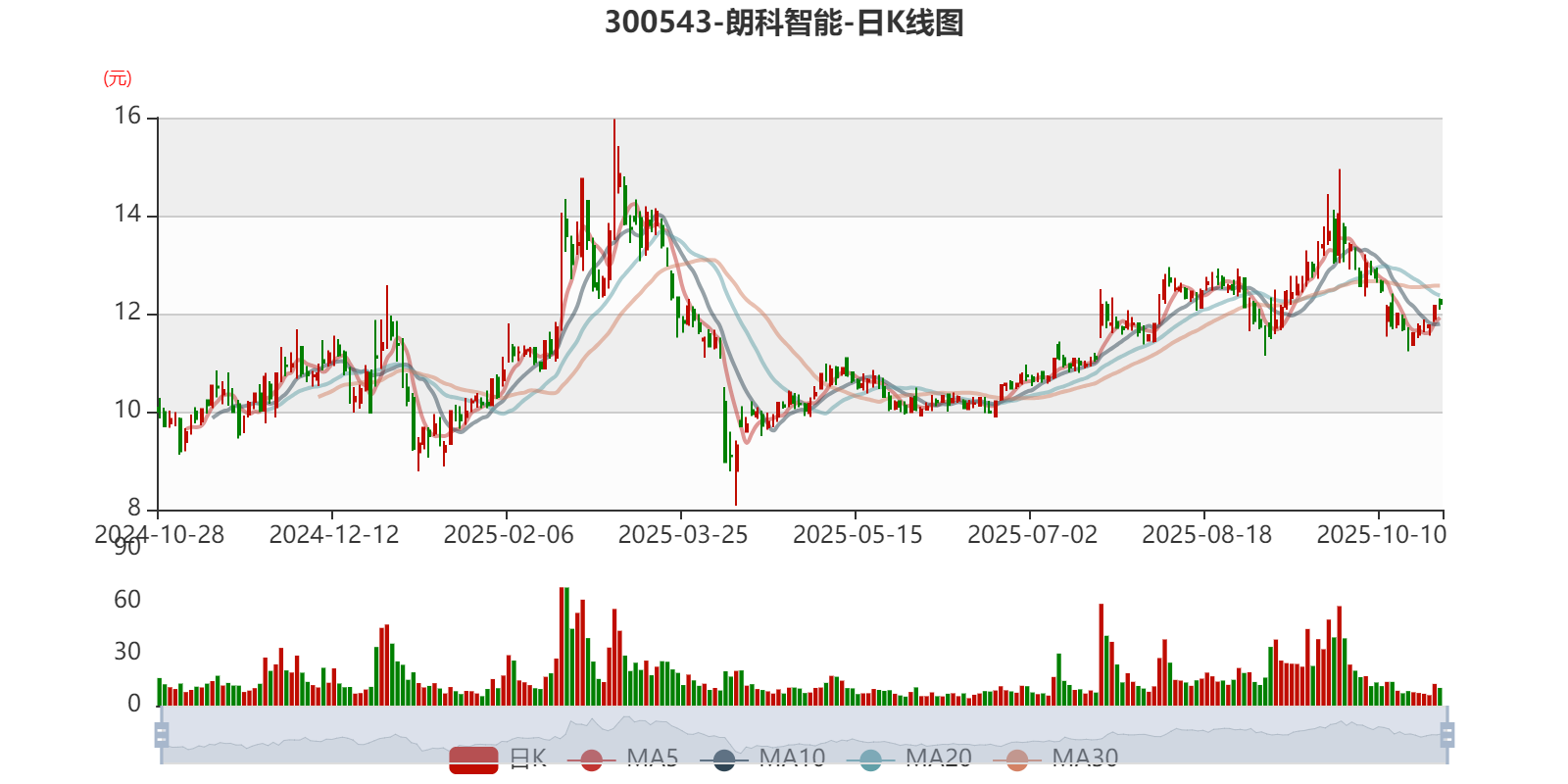 中证智能财讯朗科智能(300543)10月28日披露2025年第三季度报告。前三季度公司实现营业总收入11.92亿元,同比增长1.37%;归母净利润3006.19万元,同比下降34.40%;扣非净利润2829.37万元,同比下降32.48%;经营活动产生的现金流量净额为1.13亿元,同比增长1675.93%;报告期内,朗科智能基本每股收益为0.1039元,加权平均净资产收益率为2.64%。