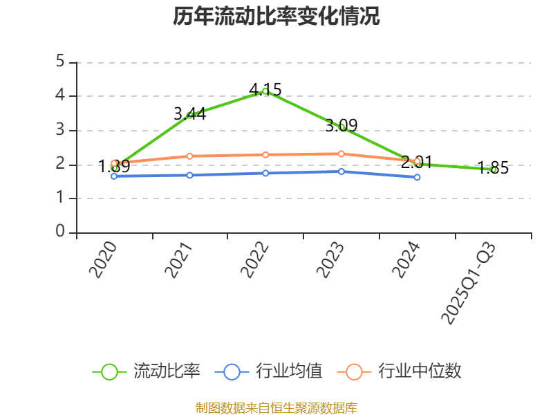 2025年前三季度,公司流动比率为1.85,速动比率为1.25。