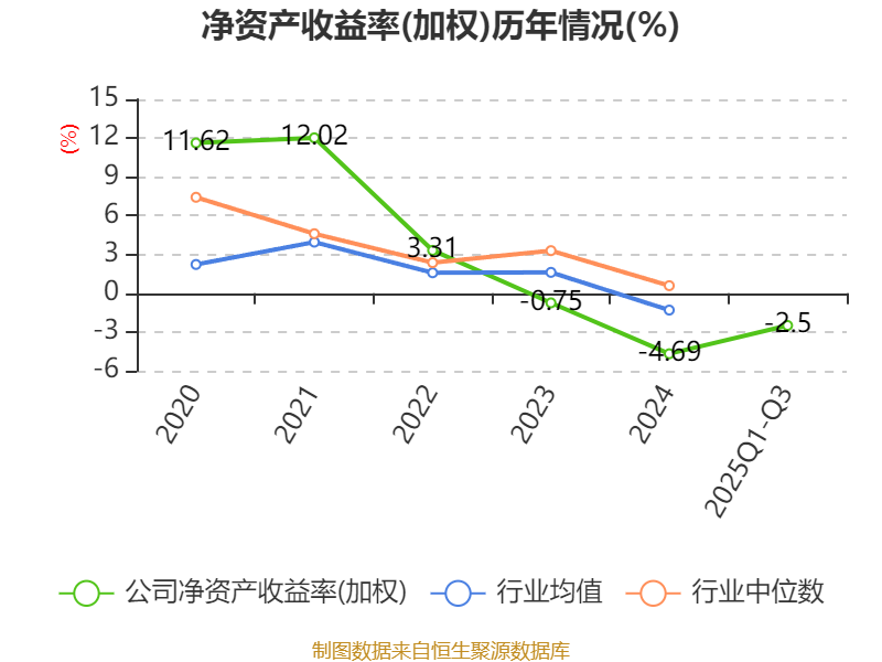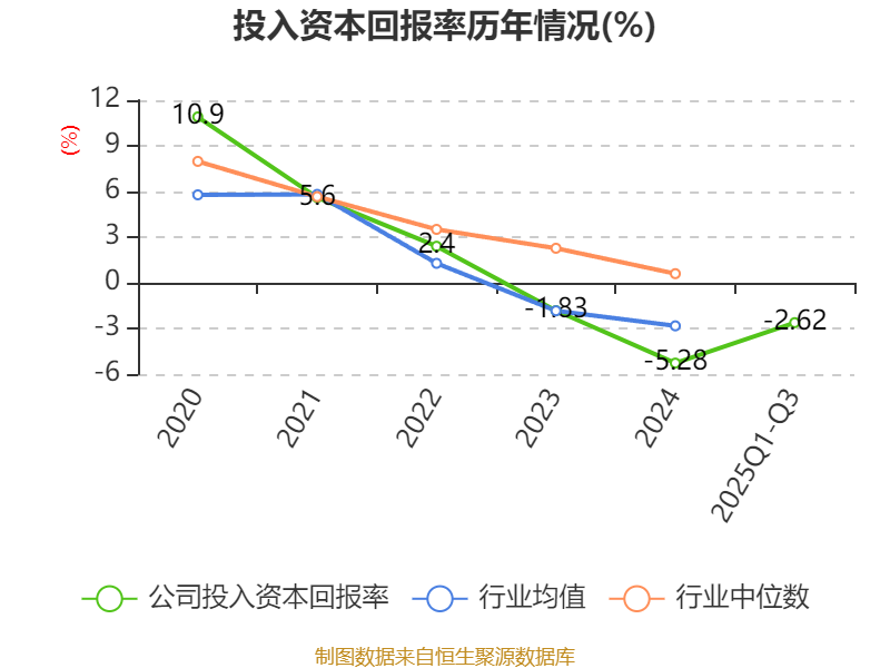 盈利能力方面, 2025年前三季度公司加权平均净资产收益率为-2.5%,同比上升0.9个百分点。公司2025年前三季度投入资本回报率为-2.62%,较上年同期上升1.74个百分点。
