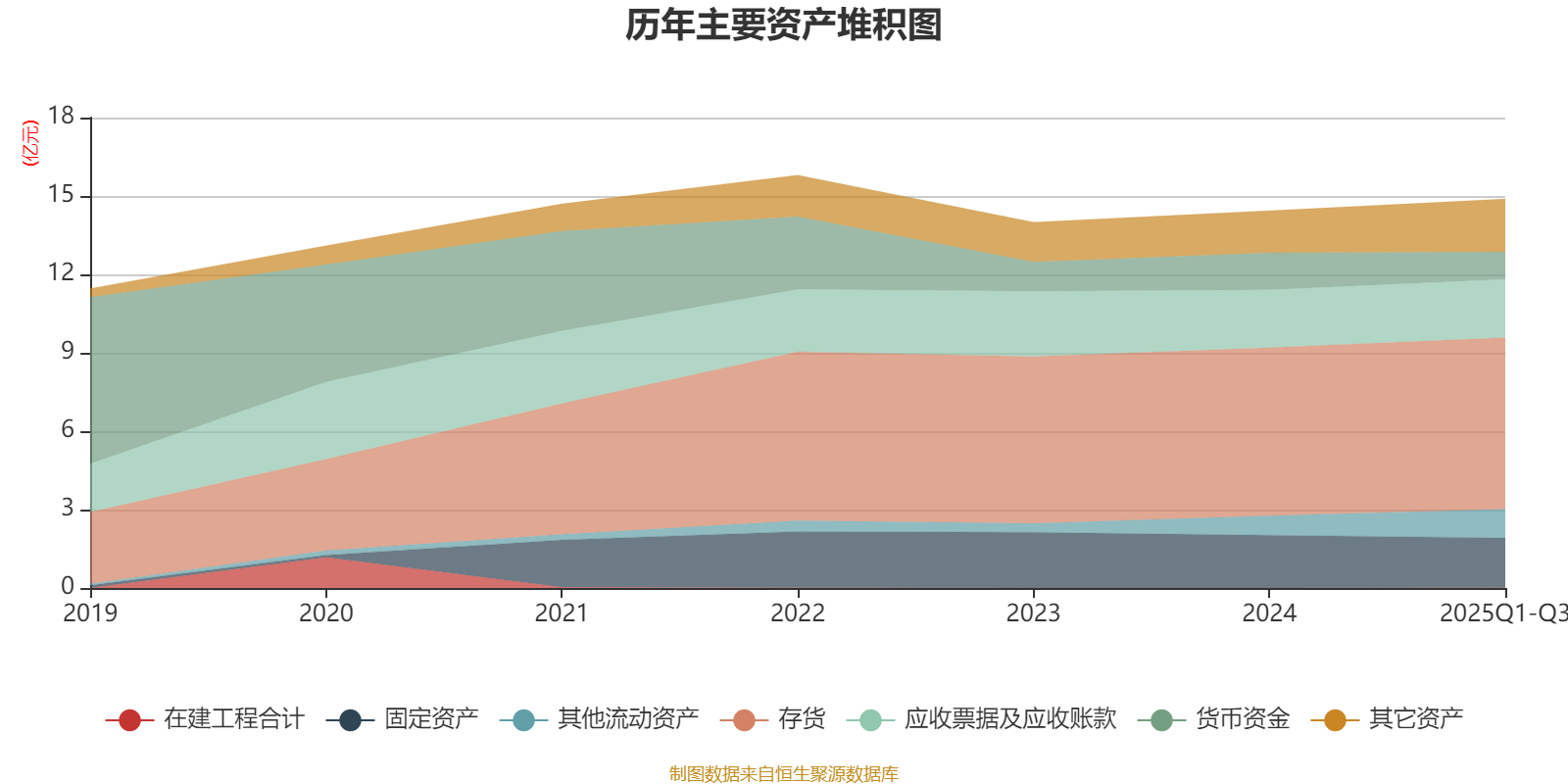 资产重大变化方面,截至2025年三季度末,公司交易性金融资产合计占公司总资产的3.97%,上年末为0;货币资金较上年末减少26.03%,占公司总资产比重下降2.77个百分点;其他流动资产较上年末增加47.29%,占公司总资产比重上升2.22个百分点;其他非流动资产较上年末减少96.97%,占公司总资产比重下降2.2个百分点。