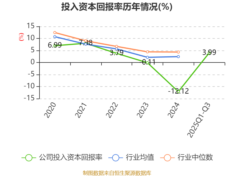 盈利能力方面, 2025年前三季度公司加权平均净资产收益率为4.48%,同比上升6.06个百分点。公司2025年前三季度投入资本回报率为3.99%,较上年同期上升6.73个百分点。